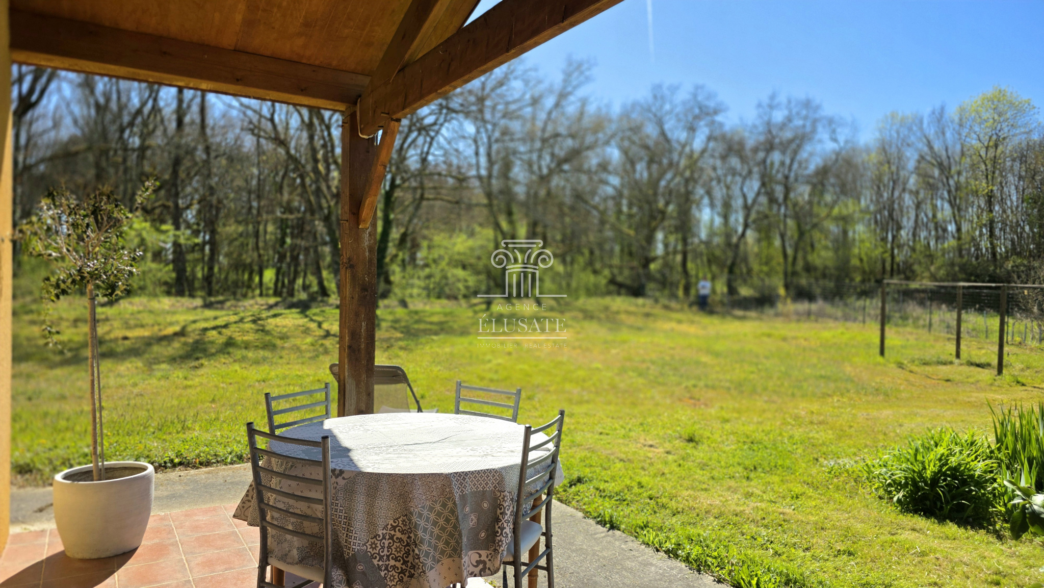 Édifiée sur une parcelle de 3 497 m², elle offre un cadre de vie idéal pour les amoureux d’espace et de tranquillité, la terrasse donne sur une partie boisée attenante à la parcelle lui donnant un attrait complémentaire.