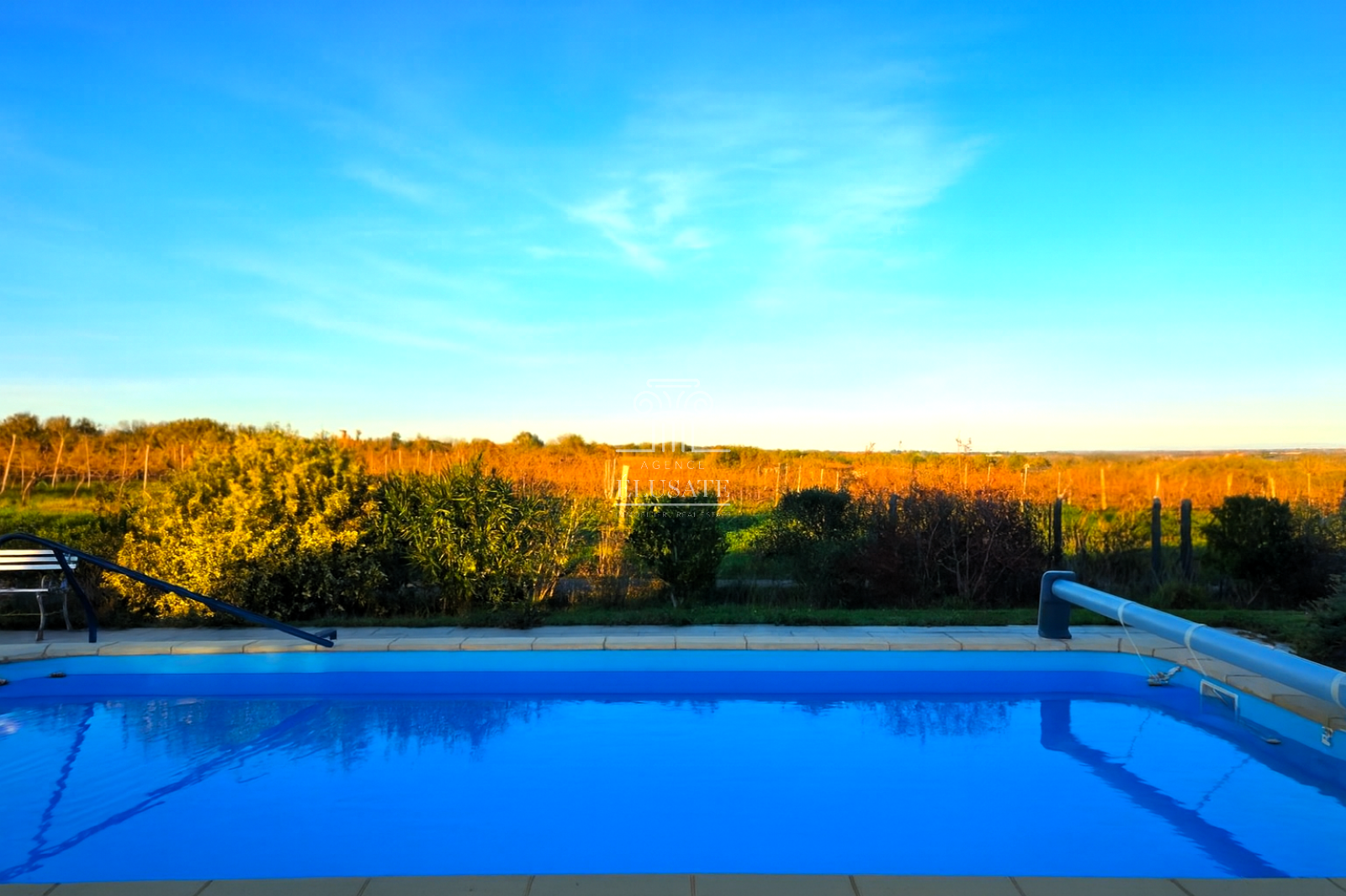Une jolie terrasse prolonge la pièce de vie offrant un superbe panorama (vue sur les vignes et campagne environnante) ainsi qu'une piscine traditionnelle 8x4x1,50m sécurisée. Elle vous permettra de profiter des beaux jours en famille ou entre amis idéale pour se rafraichir en période estivale.