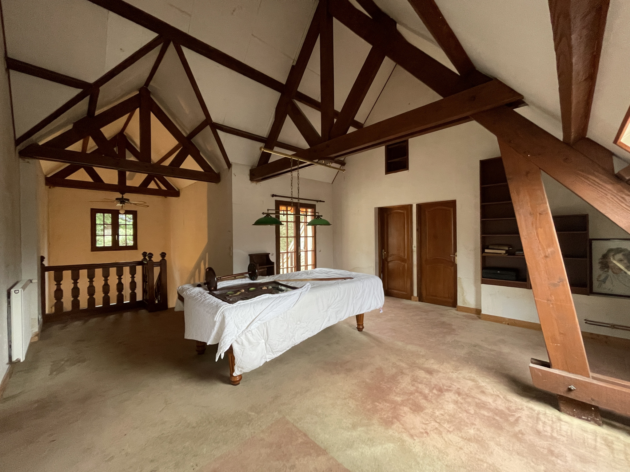 La maison comprend en rez-de-chaussée : une spacieuse entrée cathédrale desservant une cuisine aménagée, une véranda, une salle à manger, un lumineux salon-séjour avec cheminée à foyer ouvert, une chambre parentale avec salle de bains et douche, des toilettes séparées . A l'étage, une spacieuse pièce de jeux dessert 3 chambres, une salle d'eau avec toilettes.