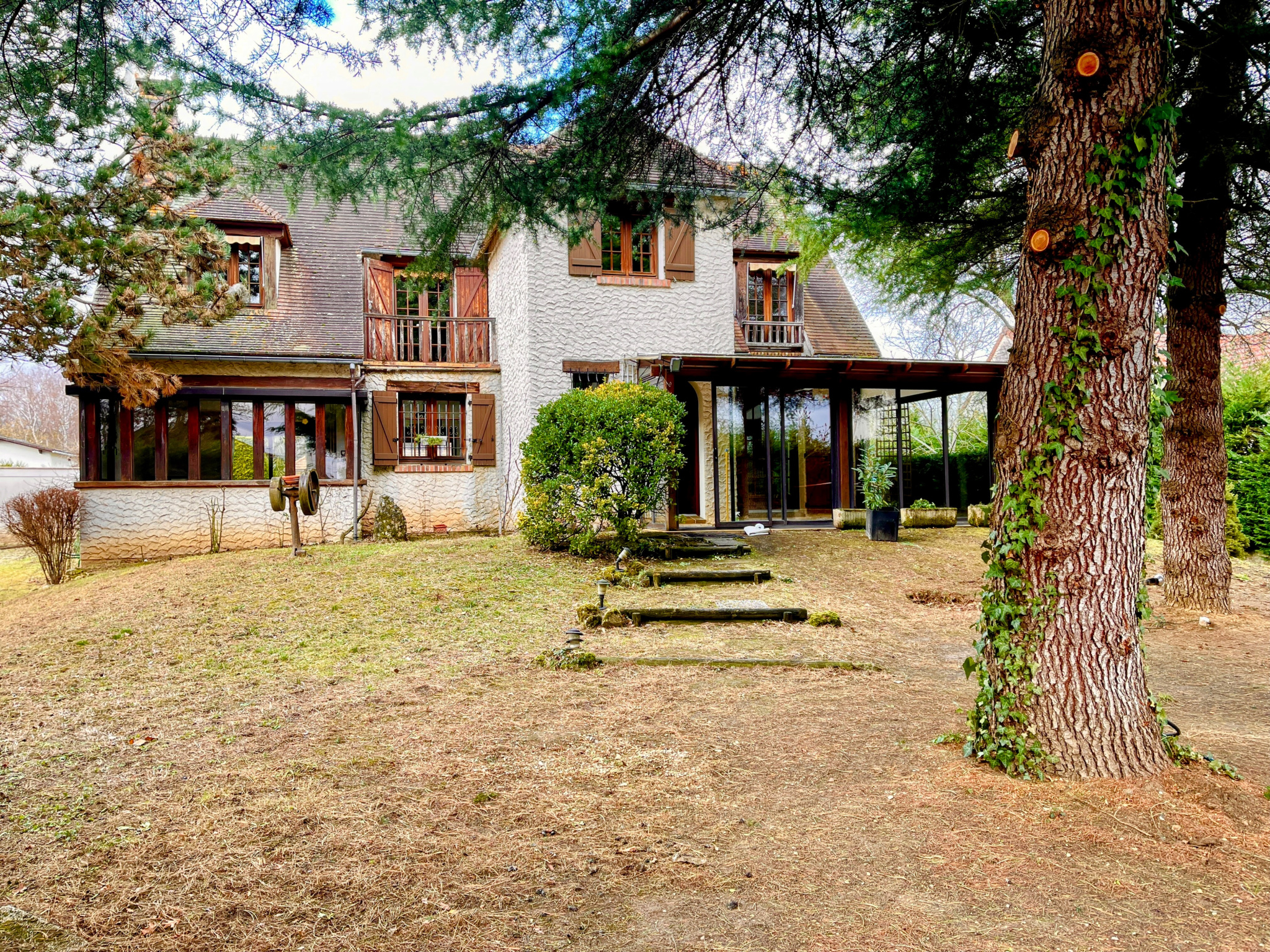 Elle se compose d'une maison individuelle de 164 m² habitables avec mode de vie de plain-pied, édifiée sur un sous-sol total, d'un jardin arboré avec piscine enterrée et appentis.