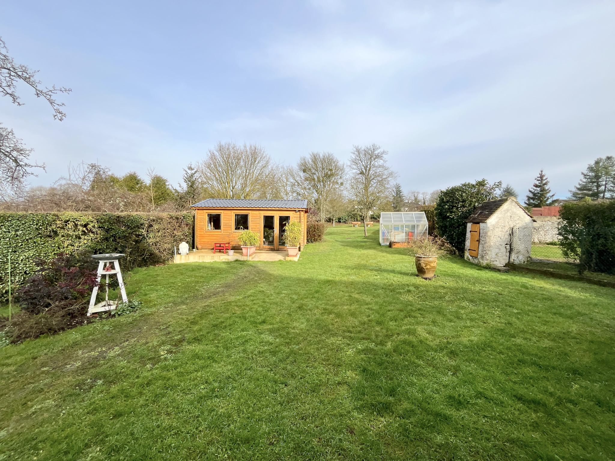 Vous serez également séduit par une belle véranda qui apporte une agréable luminosité ainsi qu'une vue plaisante sur le jardin. De plus, un bureau pouvant être utilisé comme petite chambre et une cave voutée complètent ce niveau.