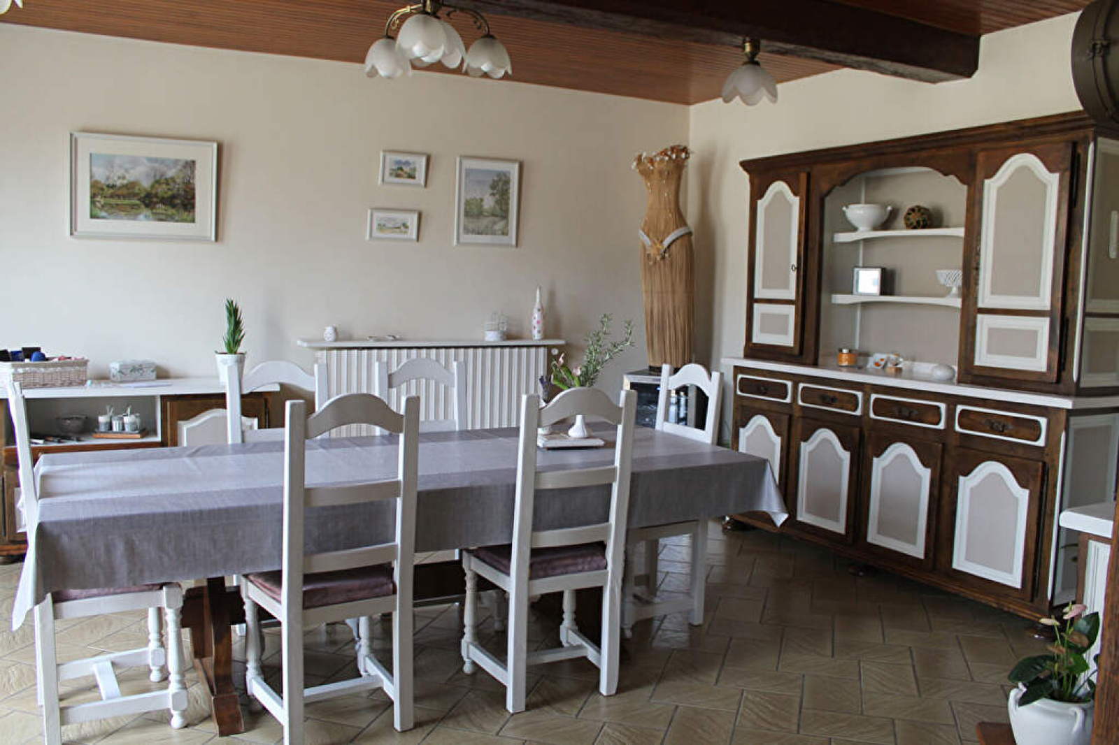 A l'étage, un grand palier distribue une grande salle de bains avec WC et deux spacieuses chambres avec dressing.Â