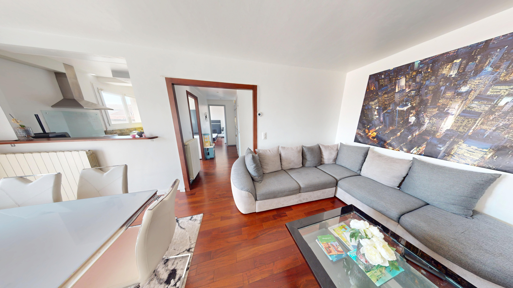 Il est composé de 3 belles chambres, une cuisine fermée, un grand séjour de 20m² ainsi qu'une salle de bain avec WC séparés.