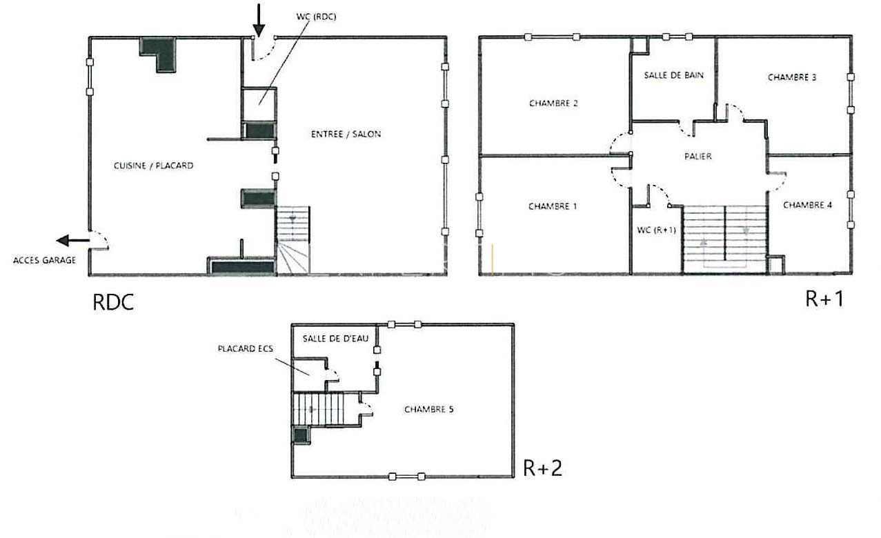 Au 1er étage, sont réparties quatre chambres, une salle de bains et un w-c séparé. Le second étage est dédié à une suite parentale de 25m2 disposant d'une salle d’eau avec w-c, d'un double dressing et de rangements supplémentaires.