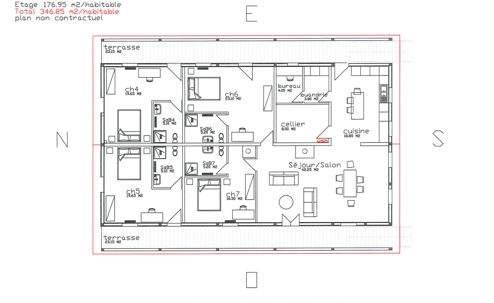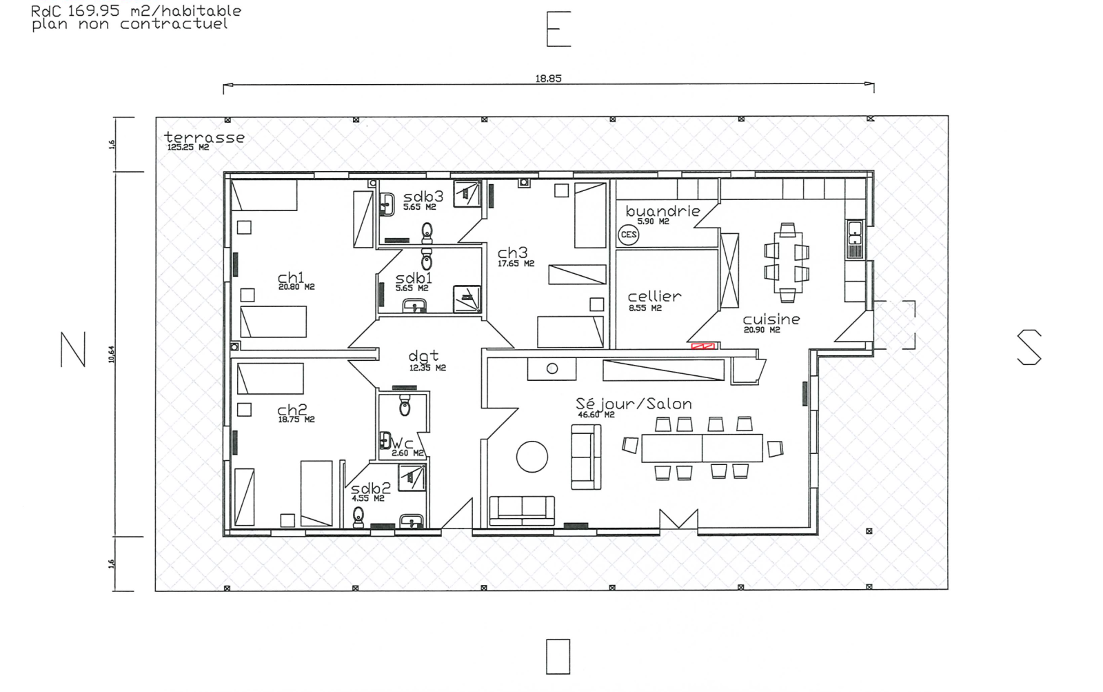 Au RDC: 1 salon/séjour, 1 cuisine, 1 cellier, 3 chambres/suites. (SDB)