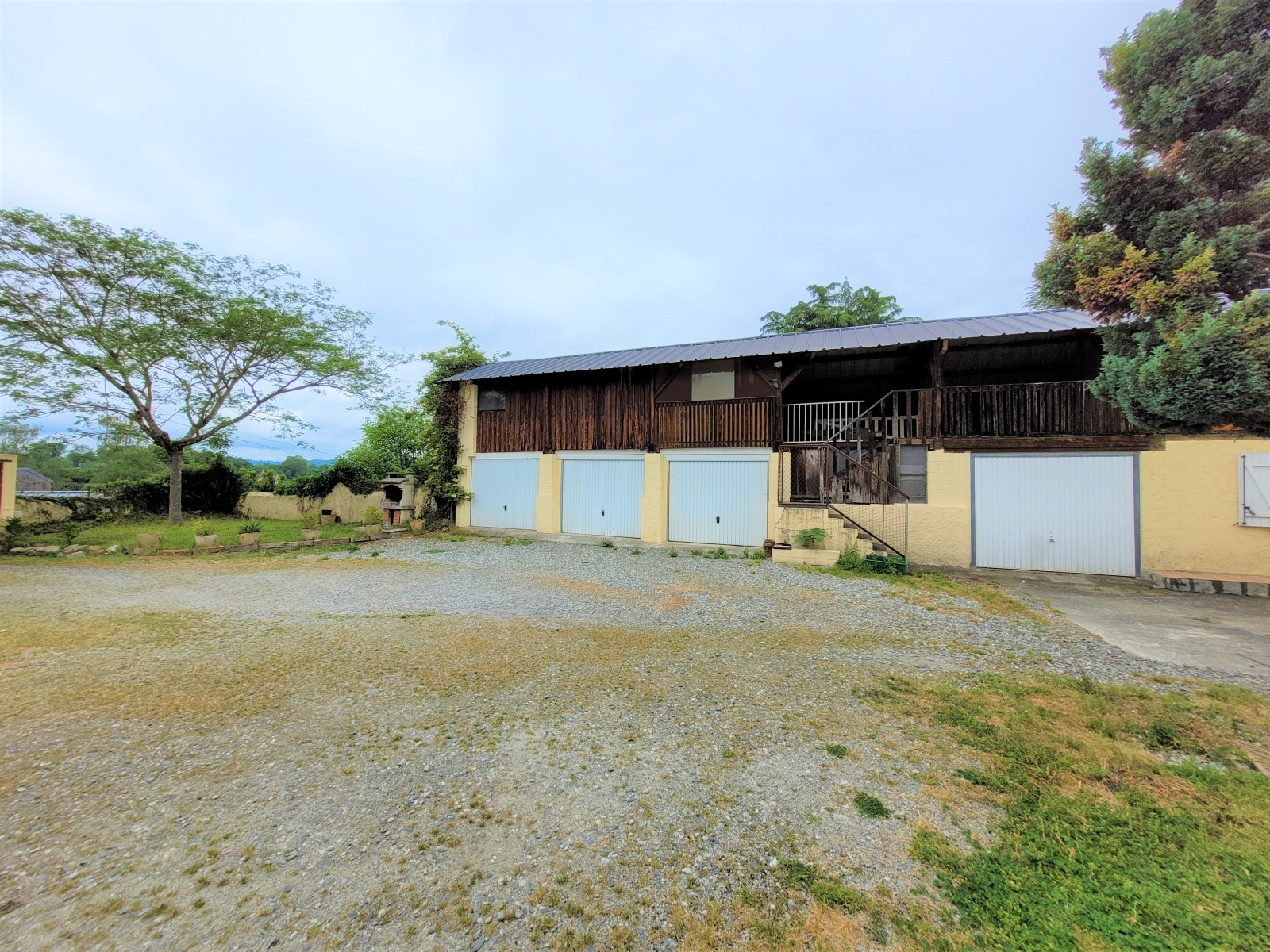 Bâtiment de 140 m2 situé au centre de Boeil-Bezing avec jardinet privatif de 90 m2, comprenant actuellement 4 garages au rez-de-chaussée, et un plateau de 70 m2 à l'étage.