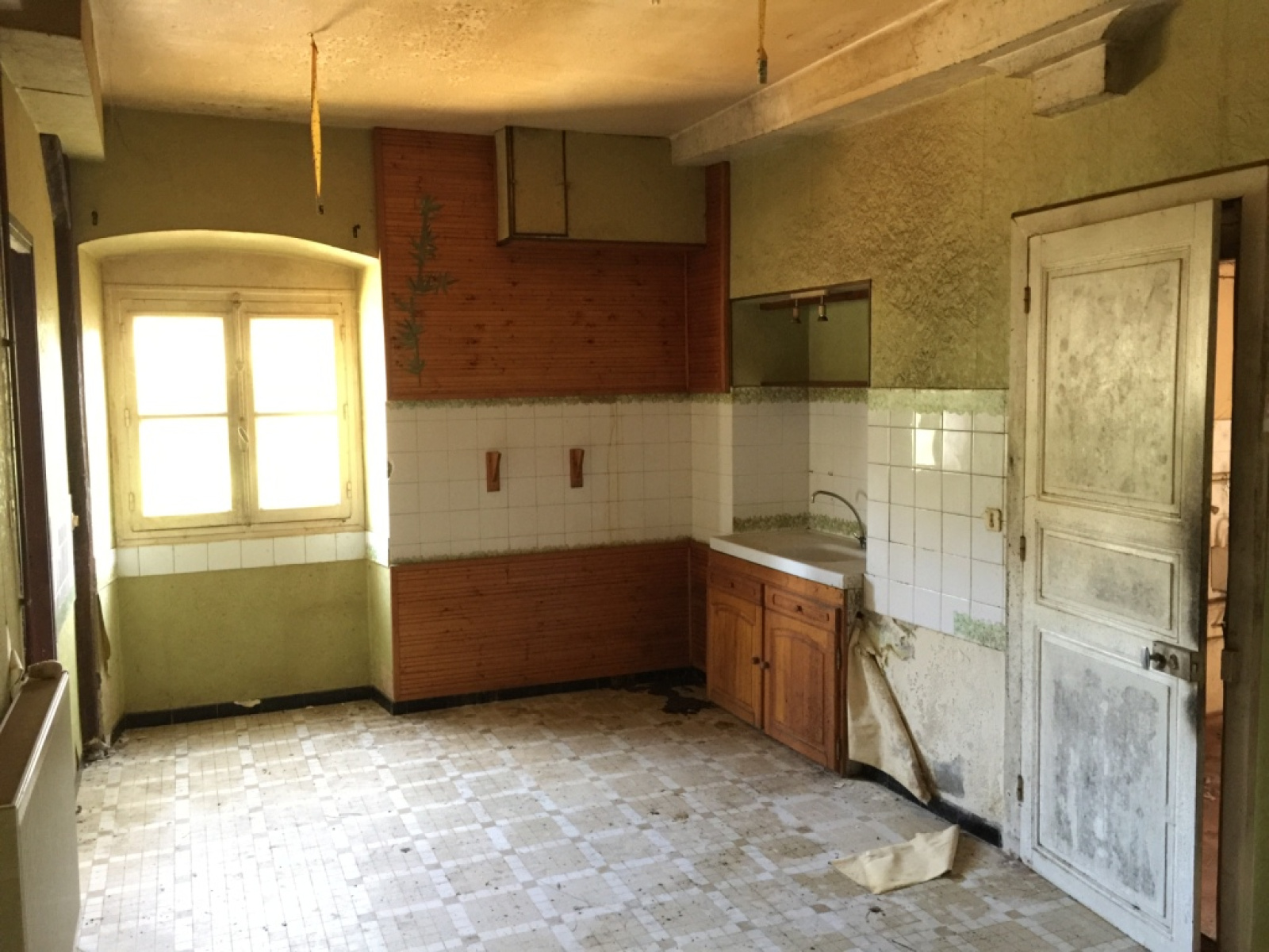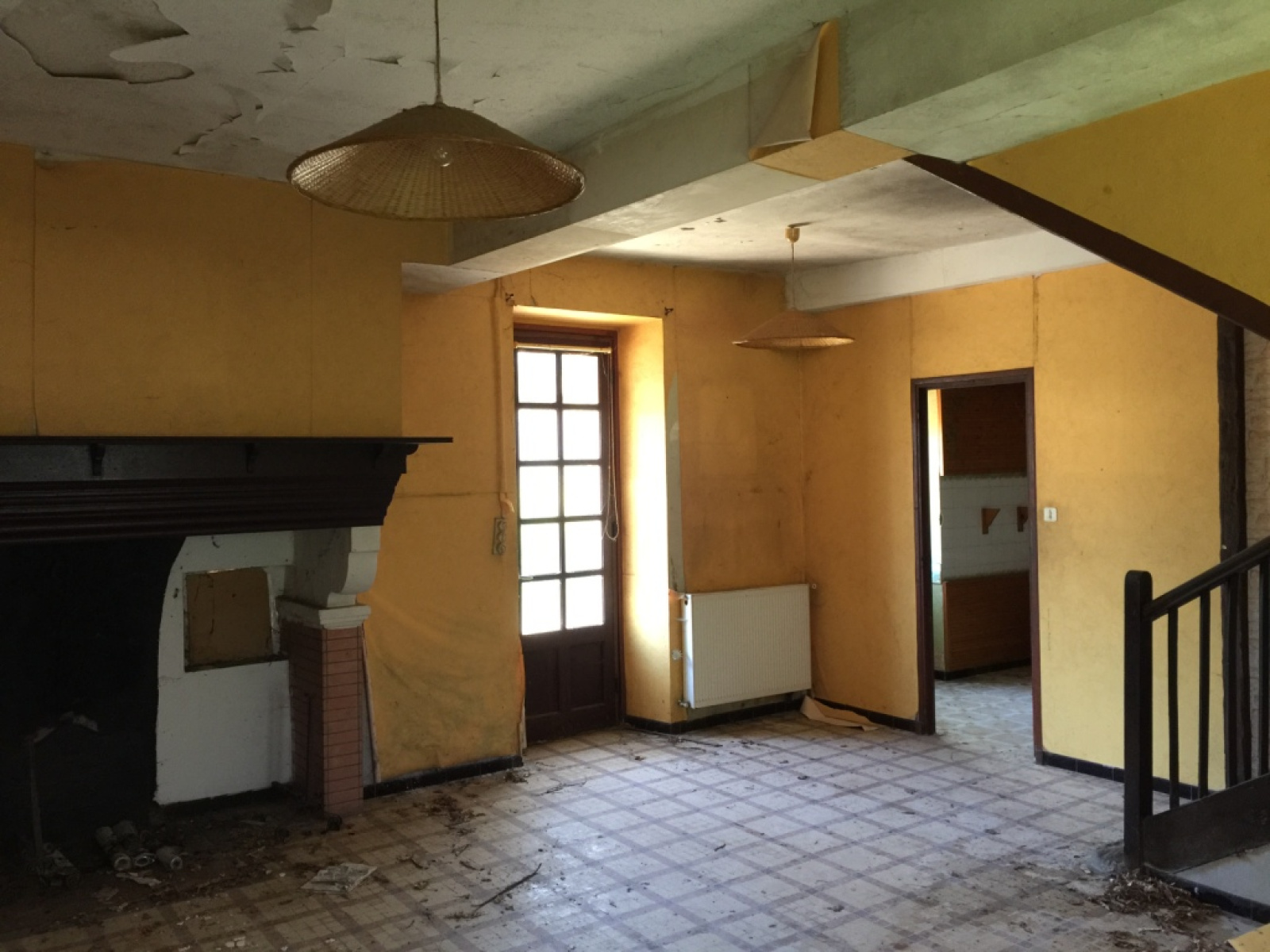 Maison à restaurer offrant de très beaux volumes. Le rez de chaussée est organisé d'une entrée sur un vaste séjour, un salon ou chambre, une cuisine avec accès à une grande pièce comprenant un wc, celle-ci pourra être aménagée d'un wc séparé d'une salle de bains et d'un grand cellier avec accès direct au bâtiment annexe comprenant garage et atelier. Au premier étage, un grand palier et dégagement distribuent trois chambres de 15, 16 et 20 m² environ et une salle de bains. Le grenier de 66 m² environ représente une très belle pièce de stockage sans modification nécessaire.