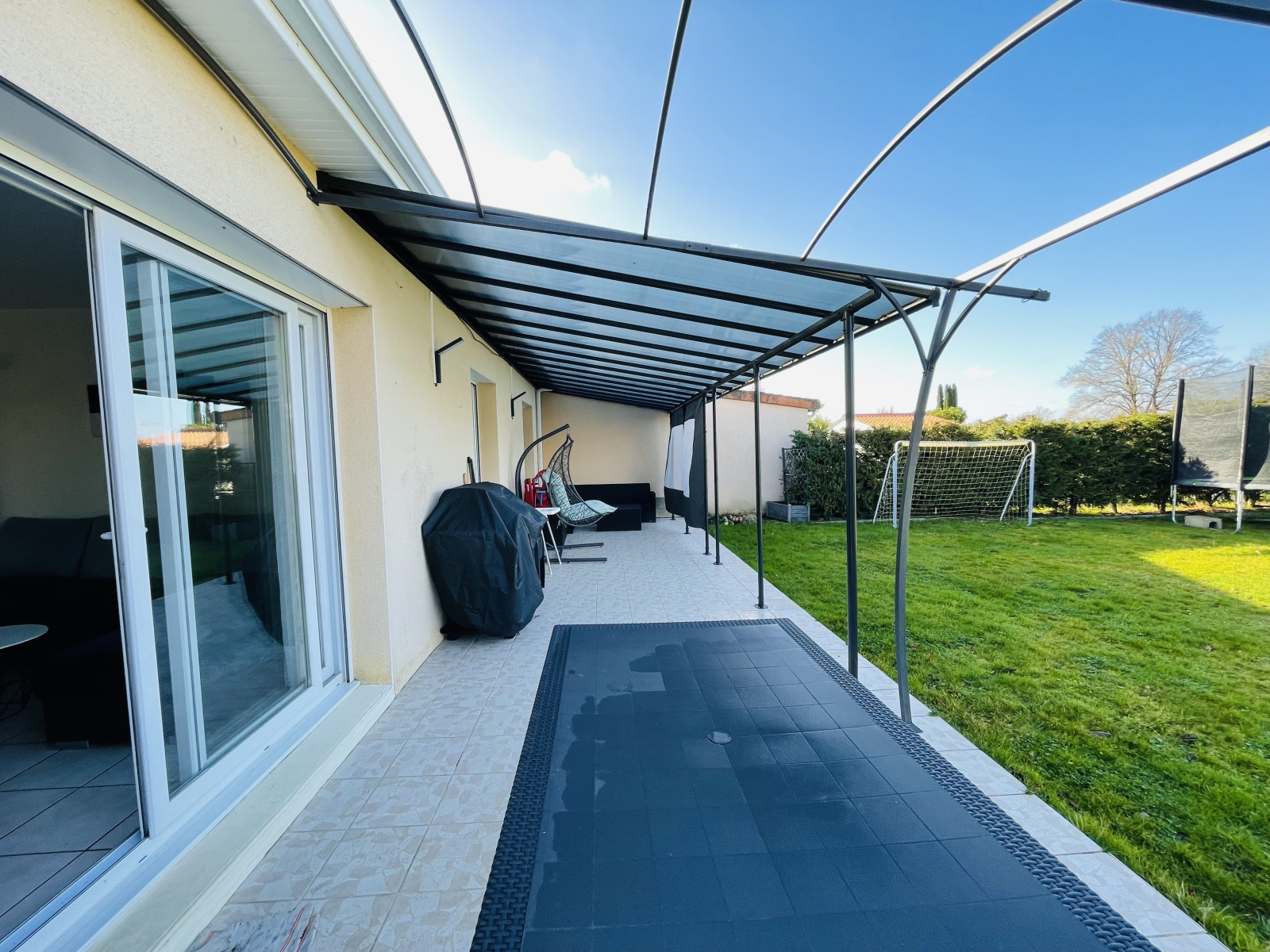 Vous pourrez profiter de sa terrasse couverte ainsi que de son jardin pour des moments de détente et pour vos économies et votre confort, chauffage gaz de ville, assainissement collectif, double vitrage et un grand garage de 35 M2 environ.