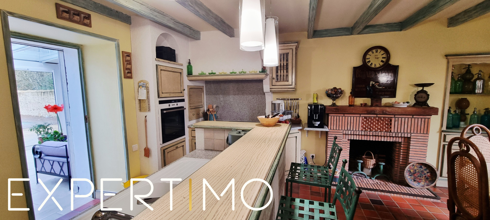 La grande cuisine dînatoire (25 m²), conviviale et fonctionnelle est pensée comme un véritable lieu de vie. Un bureau en mezzanine et un second salon avec cheminée seront parfaits pour vos journées de télétravail et les moments de calme.