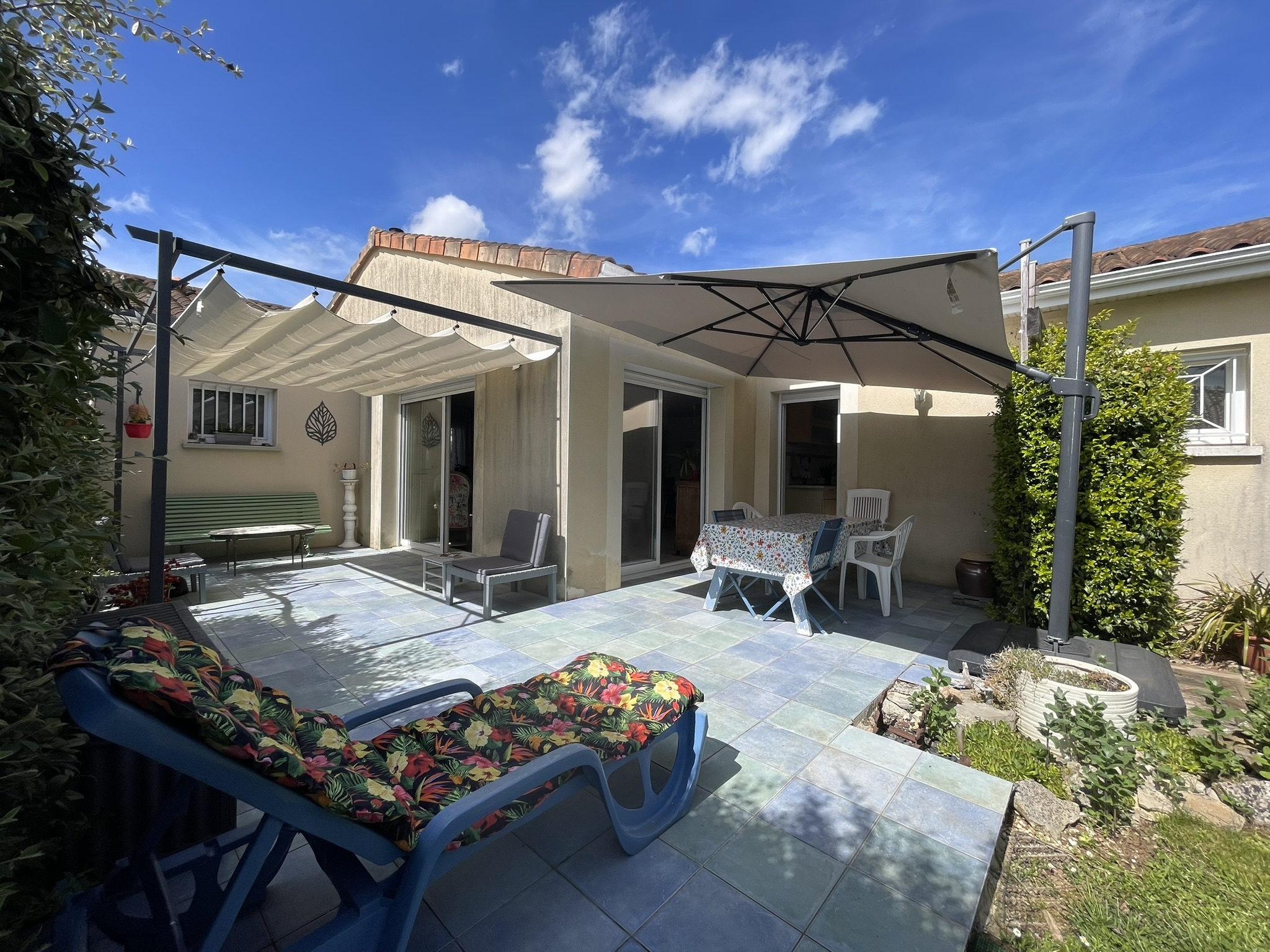 MIGNE AUXANCES idéalement situé, venez découvrir ce magnifique et rare ensemble immobilier composé d'une très agréable maison principale de 122 m2 avec sa pièce de vie très lumineuse ouverte sur la terrasse et le jardin arboré sans vis à vis, sa cuisine aménagée, ses 3 chambres dont une parentale avec sa salle de bain + douche, WC, sa salle d'eau, son espace bureau et son garage.