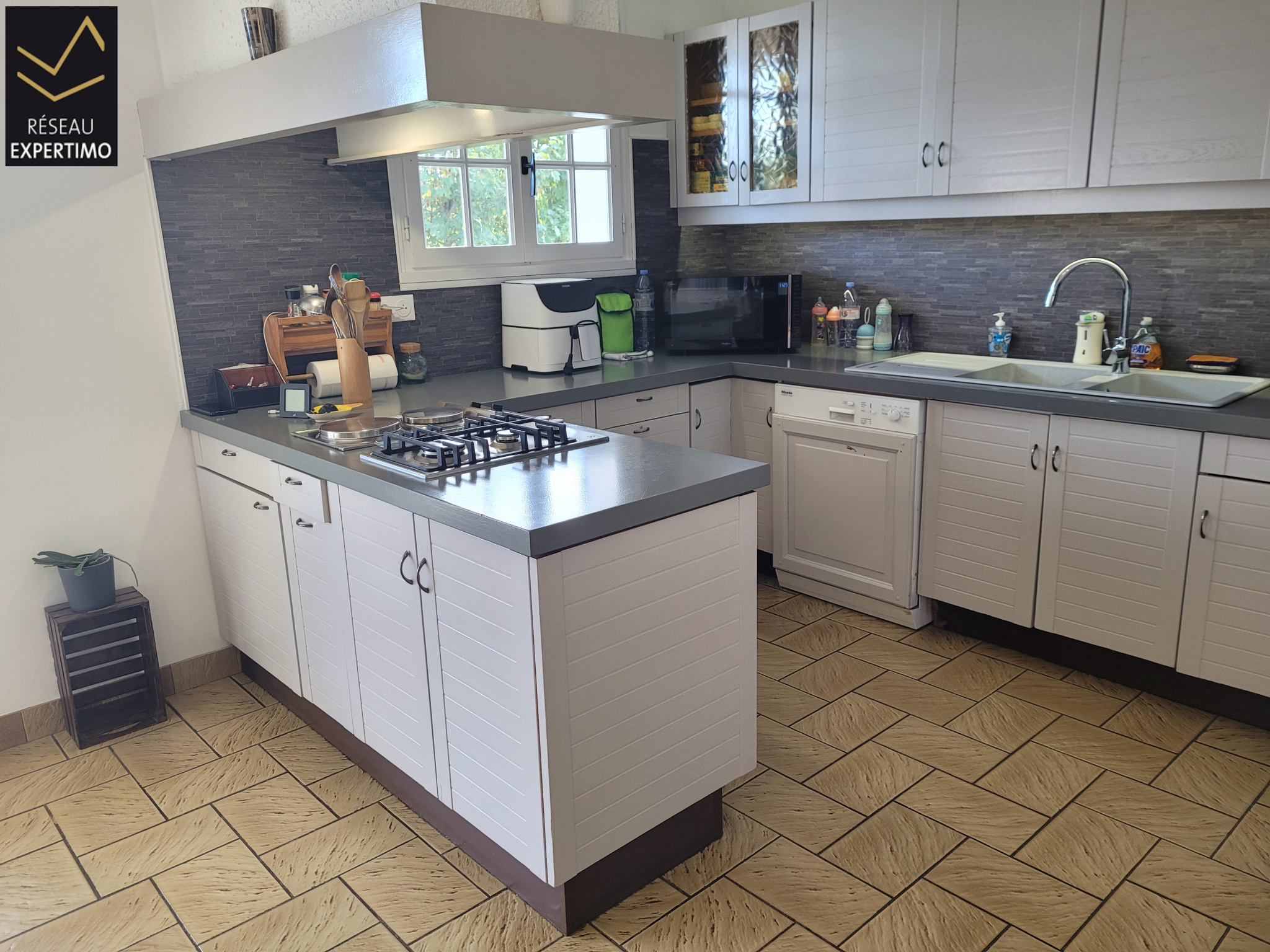 Cette agréable maison de 132 m² est composée d'une entrée, d'un grand séjour de plus de 47 m² - salon / salle à manger avec cheminée - lumière traversante (deux portes fenêtres de chaque côté dont une avec terrasse sur l'arrière). Cuisine aménagée et équipée avec espace repas - accès sur la grande terrasse abritée de devant de plus de 45 m². Vous disposez de trois belles chambres de 12,30 m² à 13,50 m², wc séparé, salle de bains avec meuble vasque et baignoire.