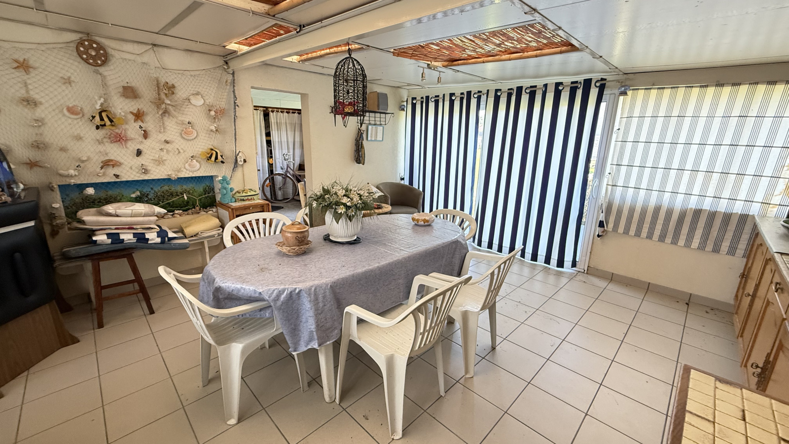 La maison principale, en excellent état, se compose d'une véranda, d'une terrasse, d'une cuisine équipée, d'un séjour, d'une chambre, d'une salle d'eau et d'un wc. Le DPE est en C, double-vitrage, isolation extérieure, ballon d'eau chaude thermodynamique, pompe à chaleur et climatisation, assainissement tout à l'égout.