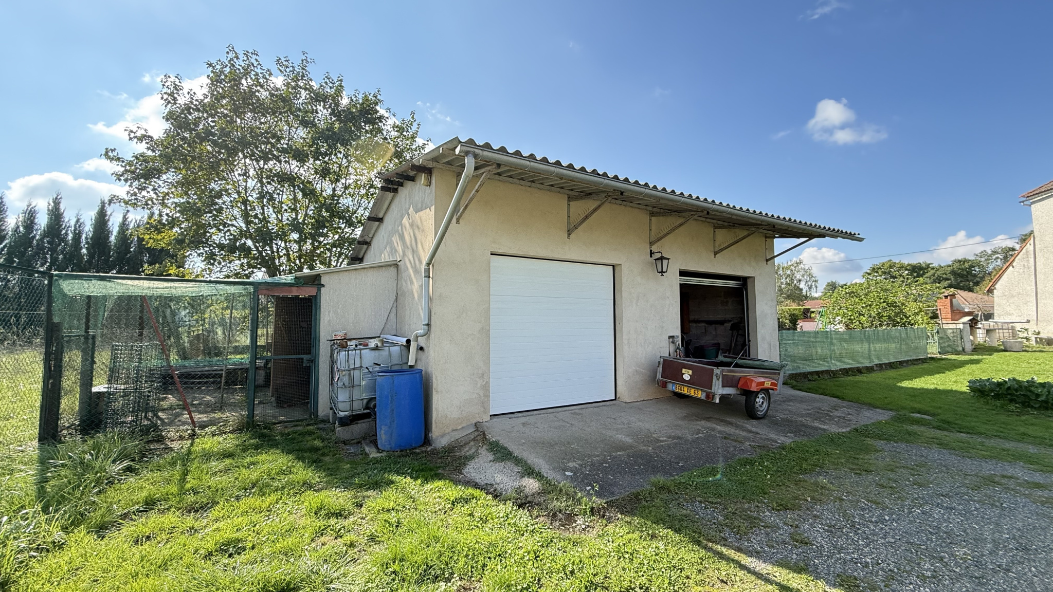 Sur le terrain, on retrouve un double garage de 52 m² et une dépendance offrant une grande cuisine d'été idéale pour les repas en famille ou entre amis.