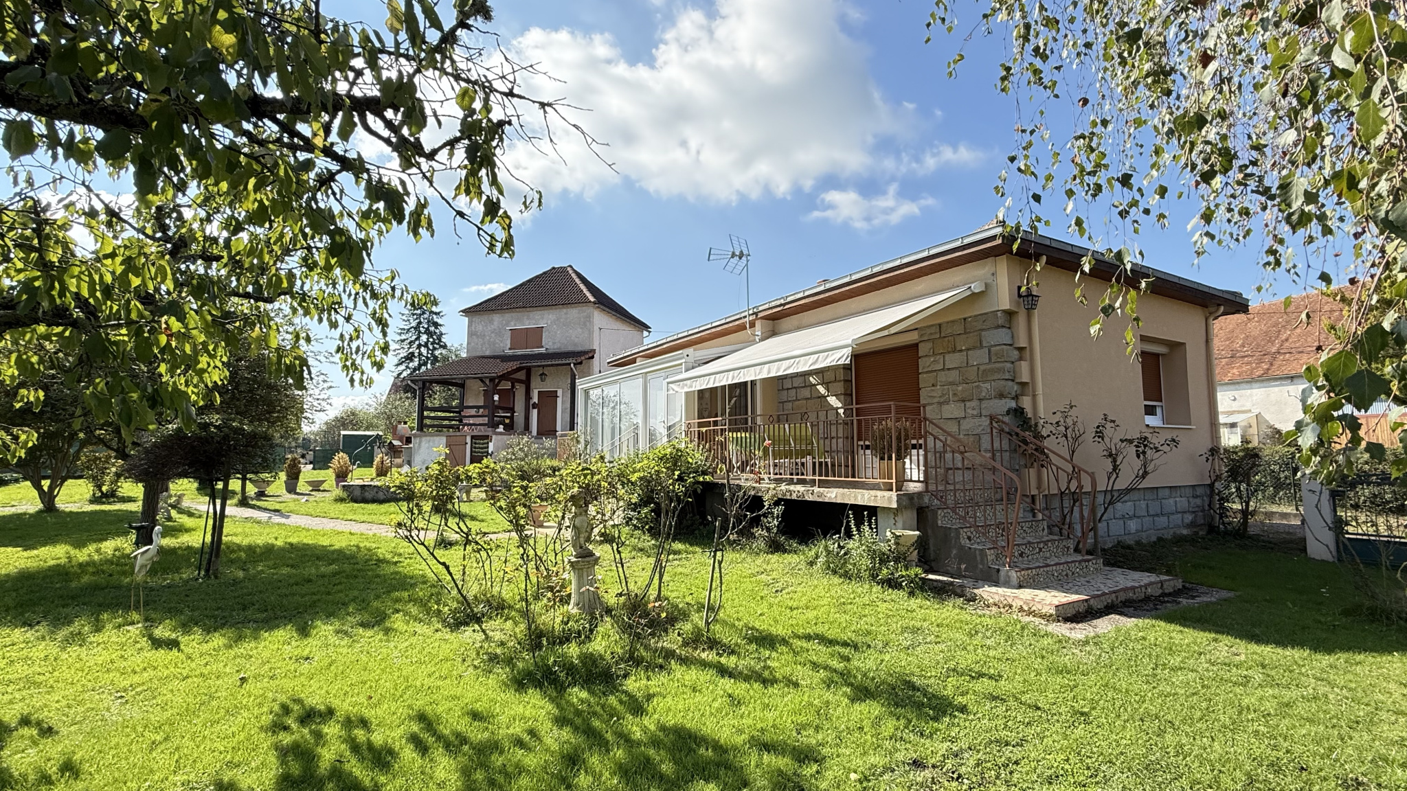 Proche de Randan et Vichy, à Saint Sylvestre Pragoulin, sur 2400 m² de terrain clos et joliment arboré, au calme, agréable propriété comprenant une maison d'habitation principale, une maison secondaire à rafraichir, un double garage, une dépendance et un puits.