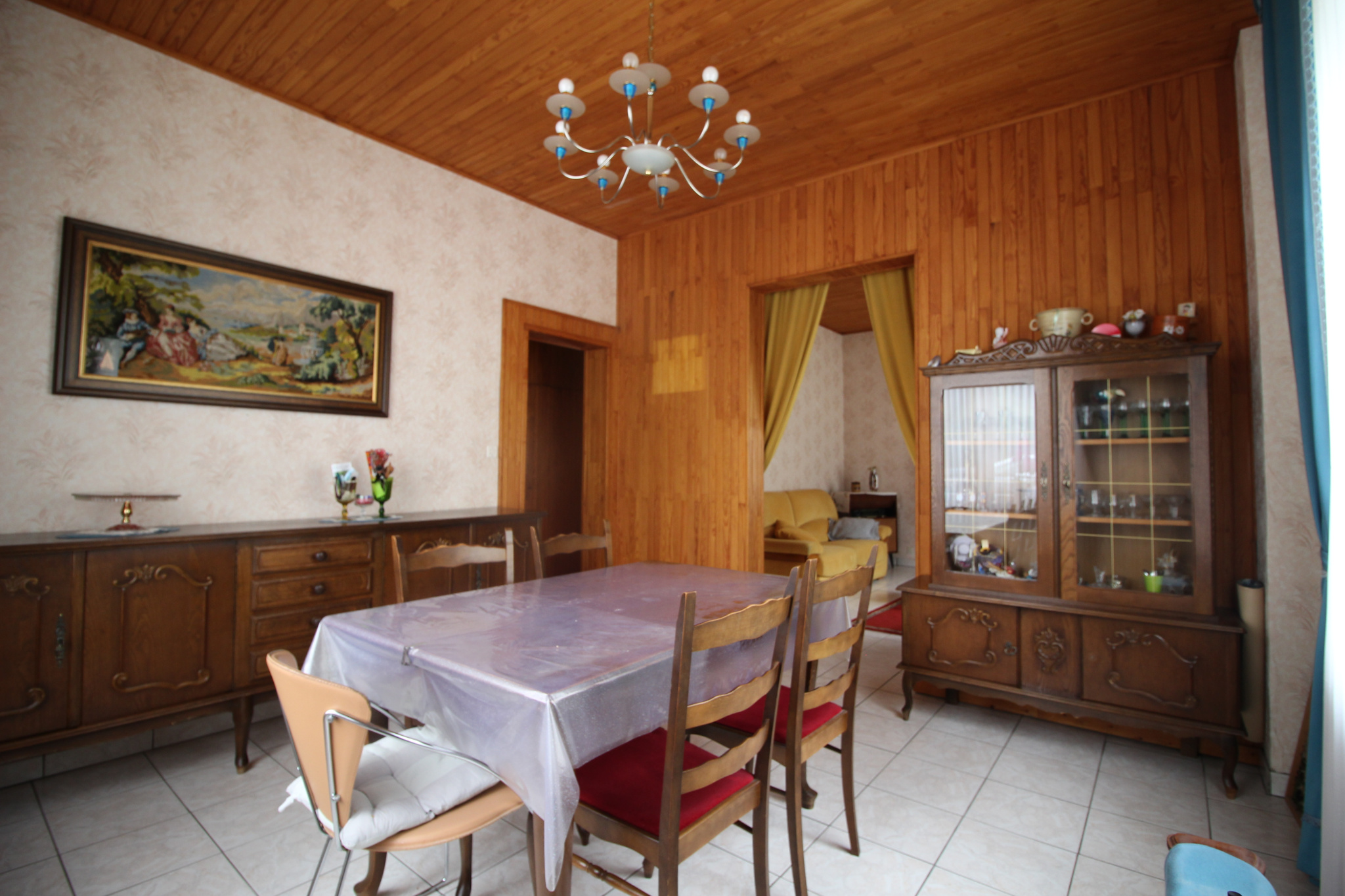carrelage, 1 porte-fenêtre donnant accès à la véranda et au jardin, 1 fenêtre