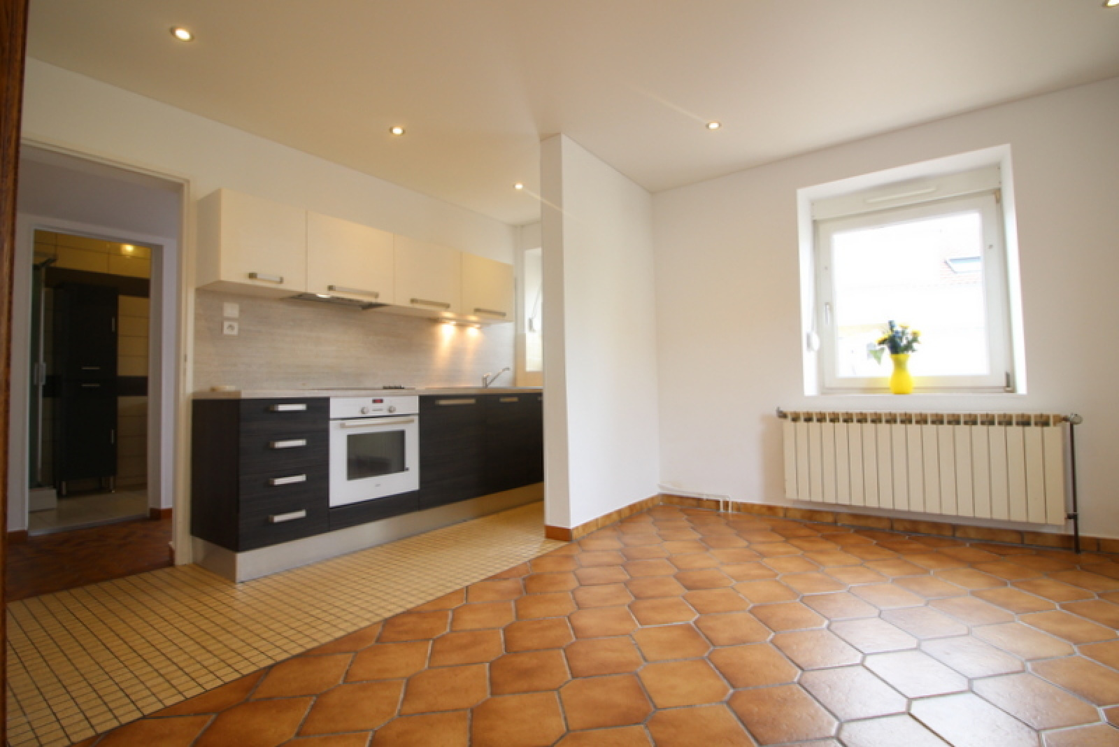 Un appartement de type F3 au 1er étage, entièrement rénové cuisine salle de bains et électricité ;