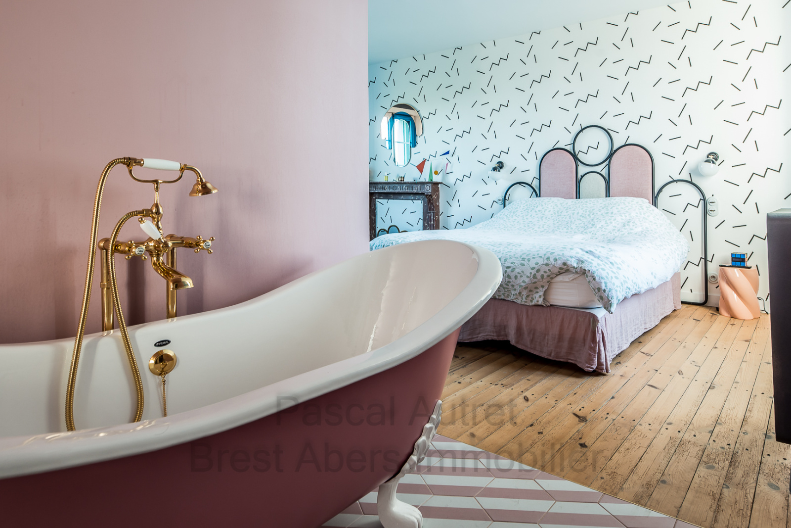 À Kerlouan Finistère Nord, en EXCLUSIVITE Pascal Autret BREST ABERS IMMOBILIER vous présente cette maison atypique EN PIERRE, entièrement rénovée avec des matériaux de très haute qualité, offrant un cadre de vie unique mêlant charme, volumes et nature.