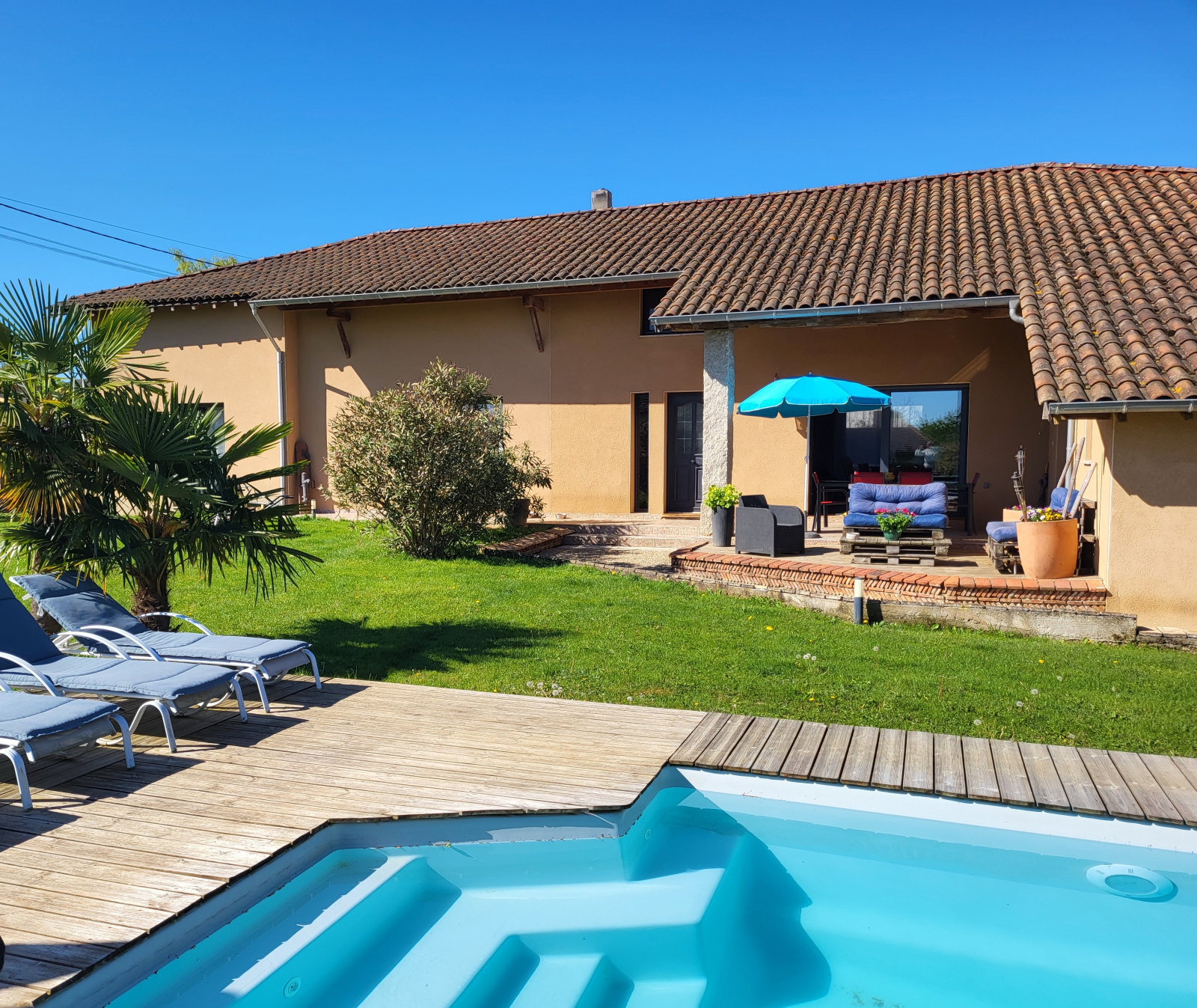 Loin des regards indiscrets à 10 mn des axes autoroutiers N/S et A40, 1h30 de GENEVE,1h de LYON, 20 Mn de BOURG-EN-BRESSE, 20mn de MÂCON, à 7 mn de PONT-DE-VEYLE, 10 mn de la ville médiévale de CHÂTILLON-SUR-CHALARONNE. elle se prête aussi bien à la résidence principale , qu'à la résidence secondaire.