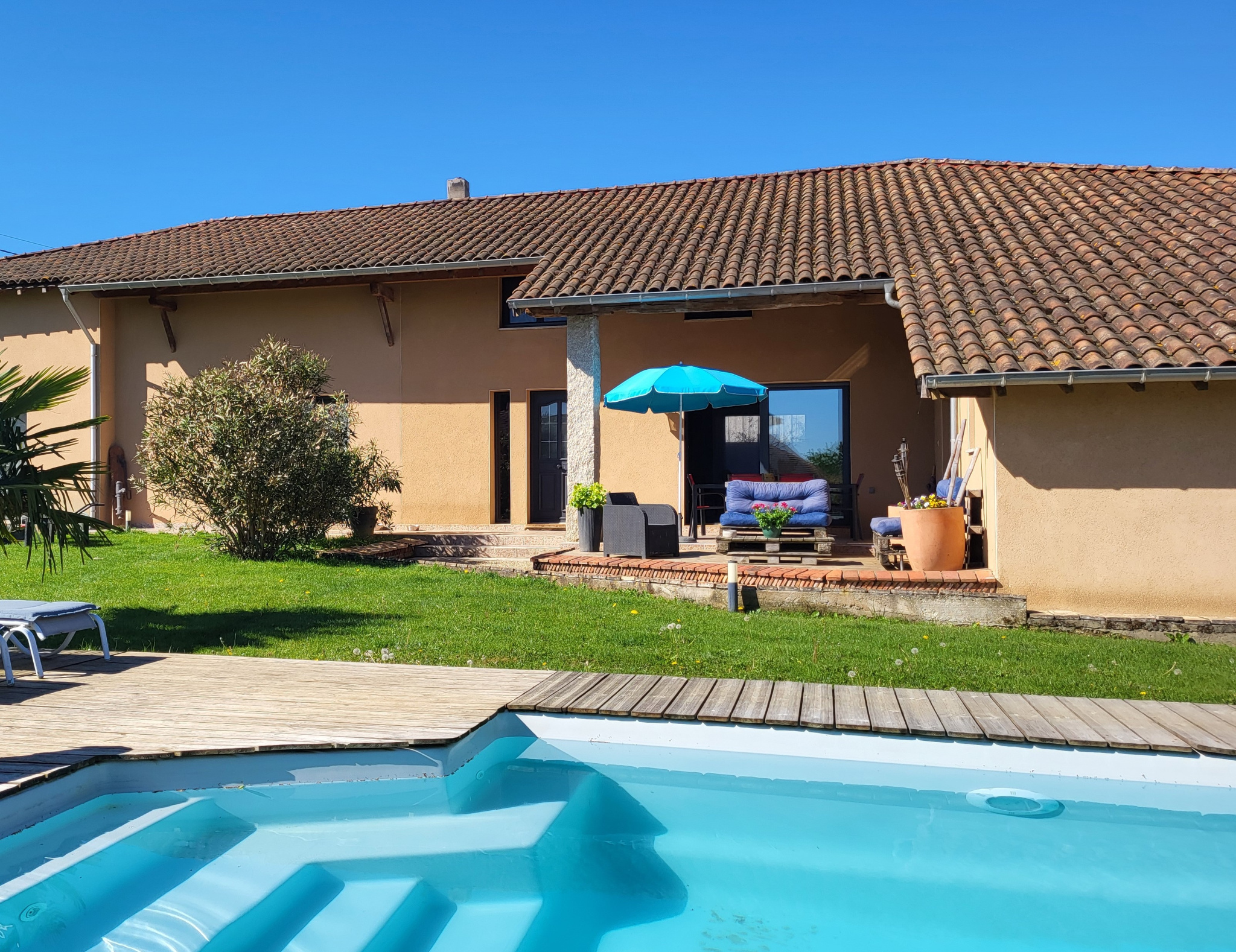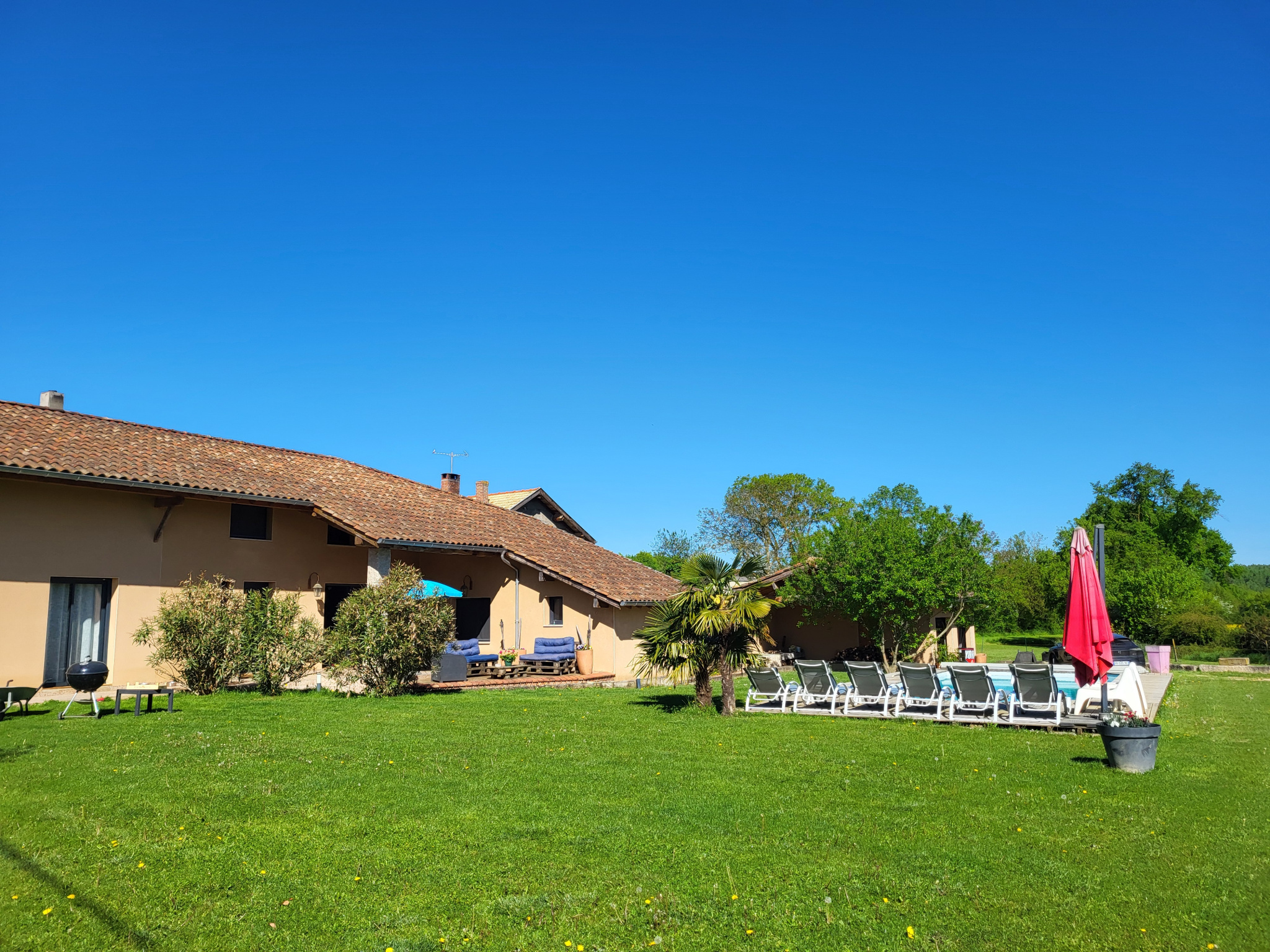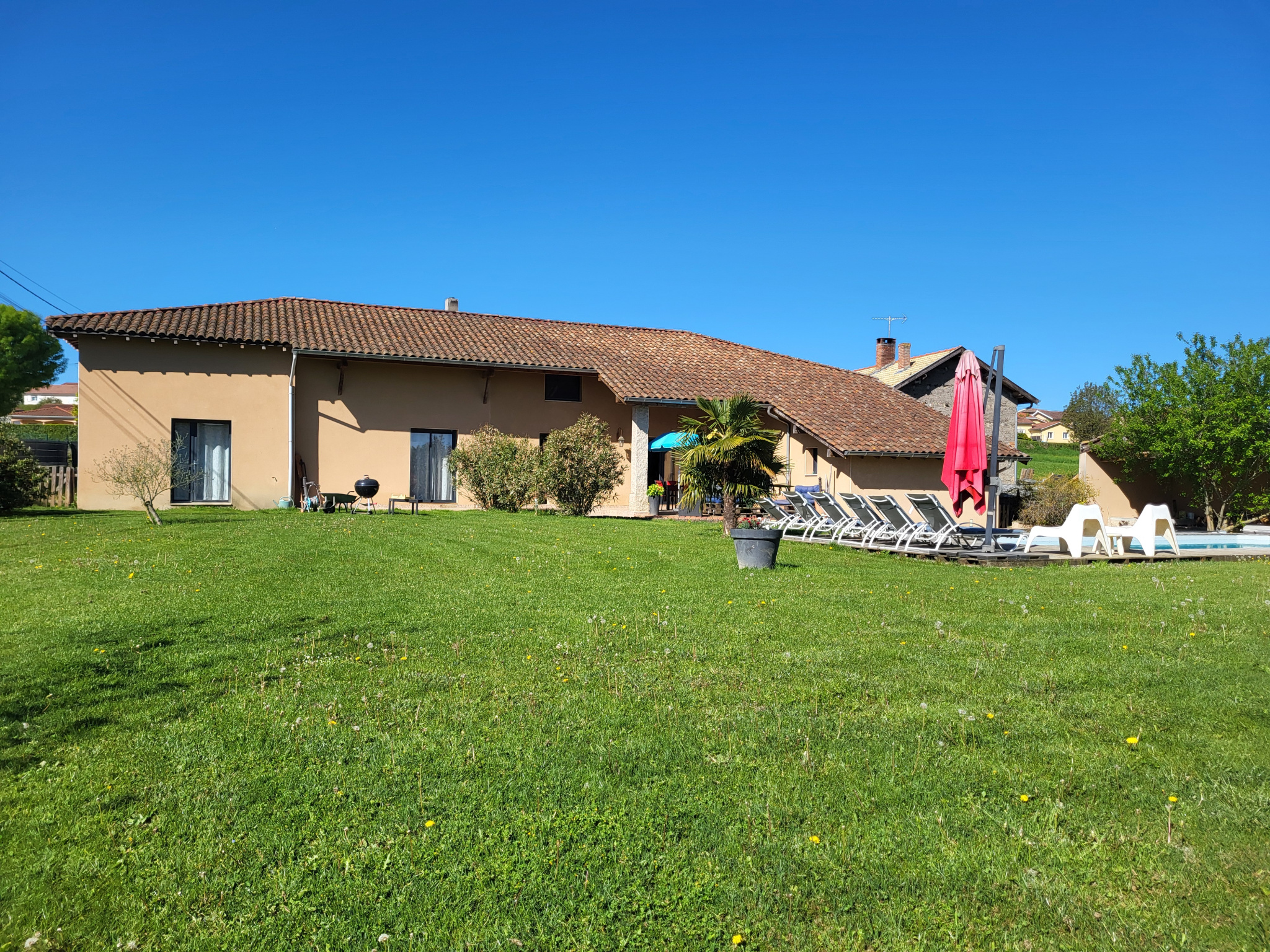 A 4 kms de Vonnas, ce charmant village avec tous commerces et services, marché local., réputé pour son restaurant renommé gastronomique Georges Blanc et ses nombreuses boutiques... Valérie MORIN EXPERTIMO au 06-80-08-24-56, a le plaisir de vous présenter ce bien atypique de 263 m2 habitables,P8, sur la commune de BIZIAT,doté de 7 chambres,déal pour l'activité chambres d'hôtes, dans un cadre champêtre, très au calme. Une propriété de charme, avec cette belle rénovation d'un ancien corps de ferme Bressan,aux poutres apparentes, à la charpente en cathédrale en eucalyptus,dans la pièce de vie; traversant, lumineux, il vous séduira , de par ,la qualité des matériaux. et de par son style contemporain, Un subtile mariage de l'authenticité , et du modernisme avec sa cuisine équipée, ses peintures et sols refaits récemment, intemporels .La bâtisse , ancienne longère , offre de belles prestations,offrant de beaux volumes et hauteur de pièces,faciles à chauffer grâce à son mode de chauffage économique .Elle bénéficie d 'un vaste salon- salle-à -manger cosy de 60 m2, d'une cuisine conviviale équipée de 40 M2 avec coin repas . Vous profiterez , au re-de-chaussée, de 2 suites avec leurs salles d'eau, douche italienne, et toilettes; tandis qu'à l'étage , dans la partie nuit bien distaincte ,vous aurez 3 chambres,1 salle d'eau avec wc, d'un côté , alors que de l'autre un bureau en mezzanine, et 2 autres chambres vous seront mises à disposition. Propice à une activité de tourisme, à la ferme, ou séminaires, Bien-Etre,....chacun y va de son idée!!! ou tout simplement le plaisir d'avoir une grande maison familiale , conviviale et chaleureuse pour recevoir ses amis comme sa famille. Lovée au beau milieu d'un grand terrain de 5000 m2, avec double exposition,vue sur la piscine chauffée et la cour paysagée. Non attenant, l'ancien corps de ferme dispose d'un double garage, local piscine .Son aire de stationnement peut accueillir au moins 10 voitures.