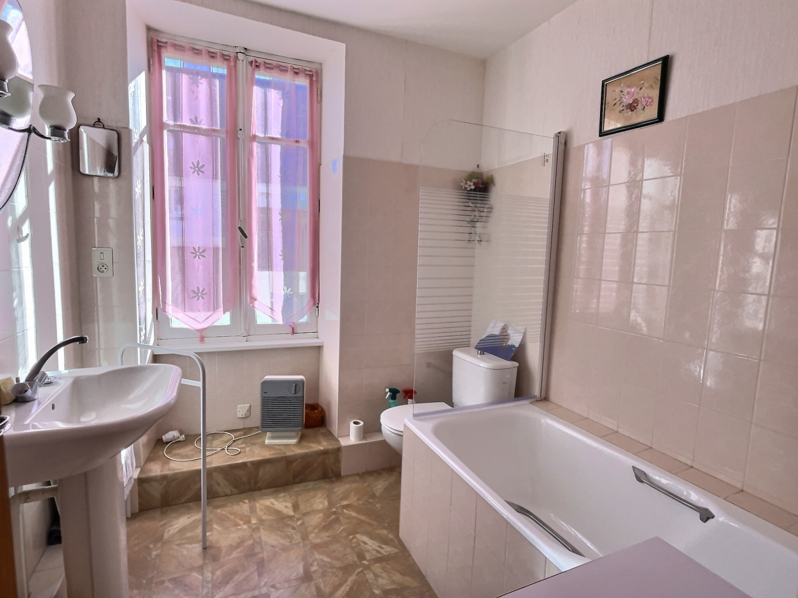 Etage 1 : deux chambres dont une avec 2 placards et lavabo, salle de bain avec wc