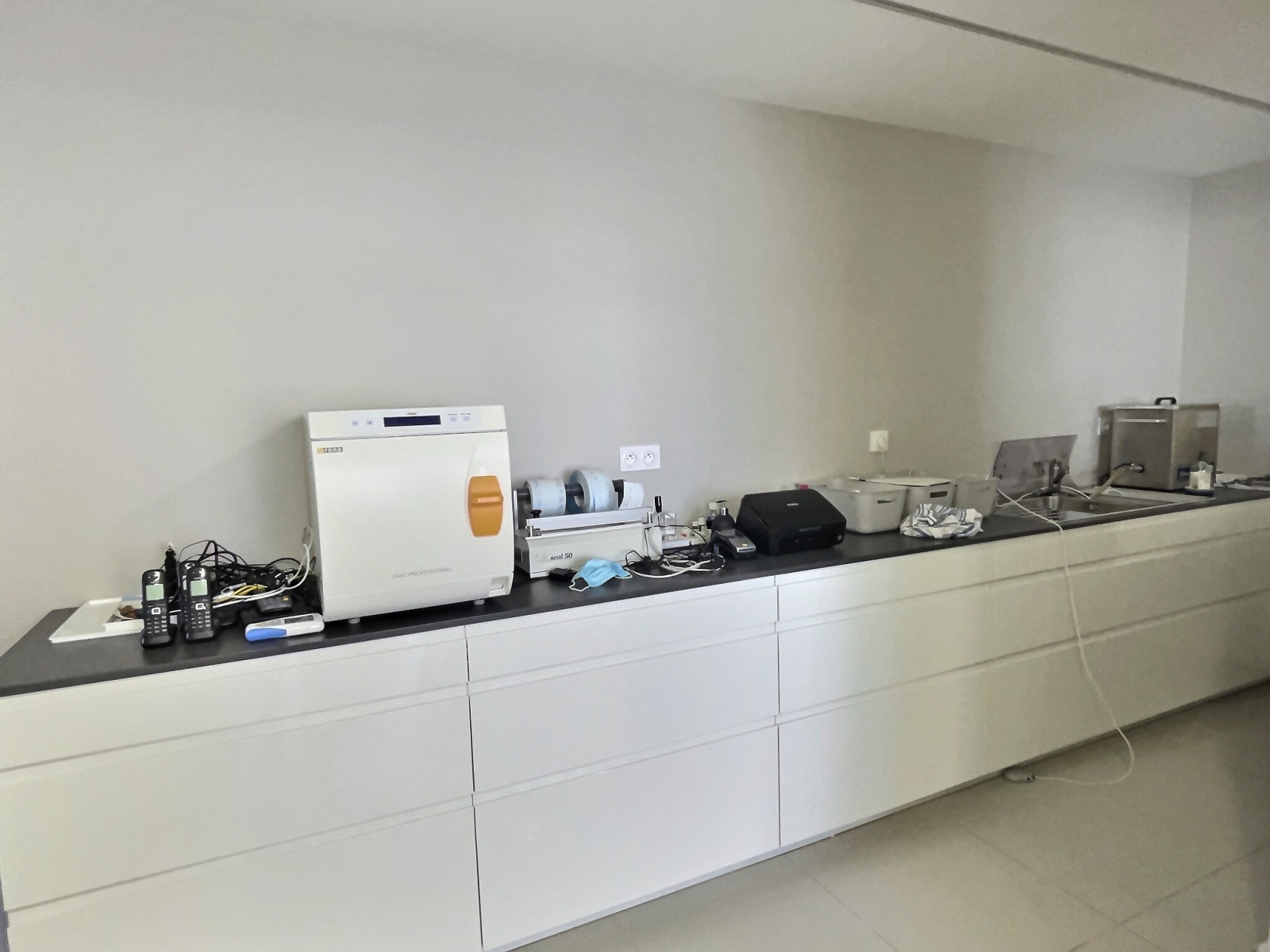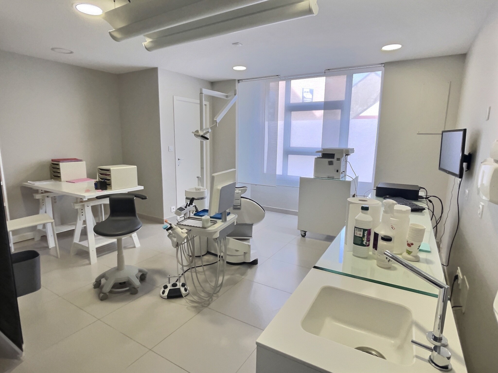 Disposant de deux entrées indépendantes ( accès PMR), le rez-de -chaussé est composé à droite du cabinet d’une profession libérale comprenant une salle d’attente, une grande pièce, un laboratoire, un wc indépendant.