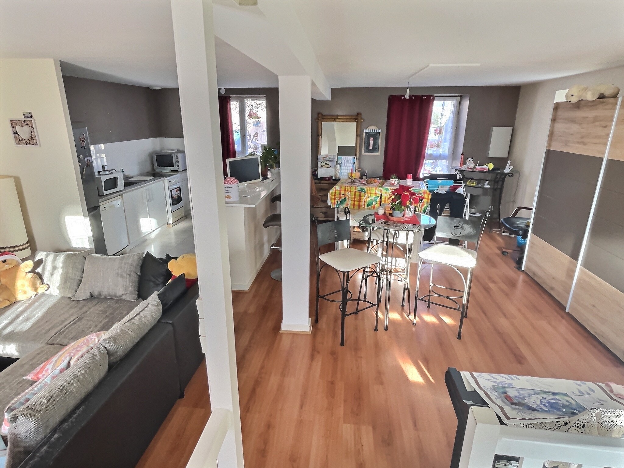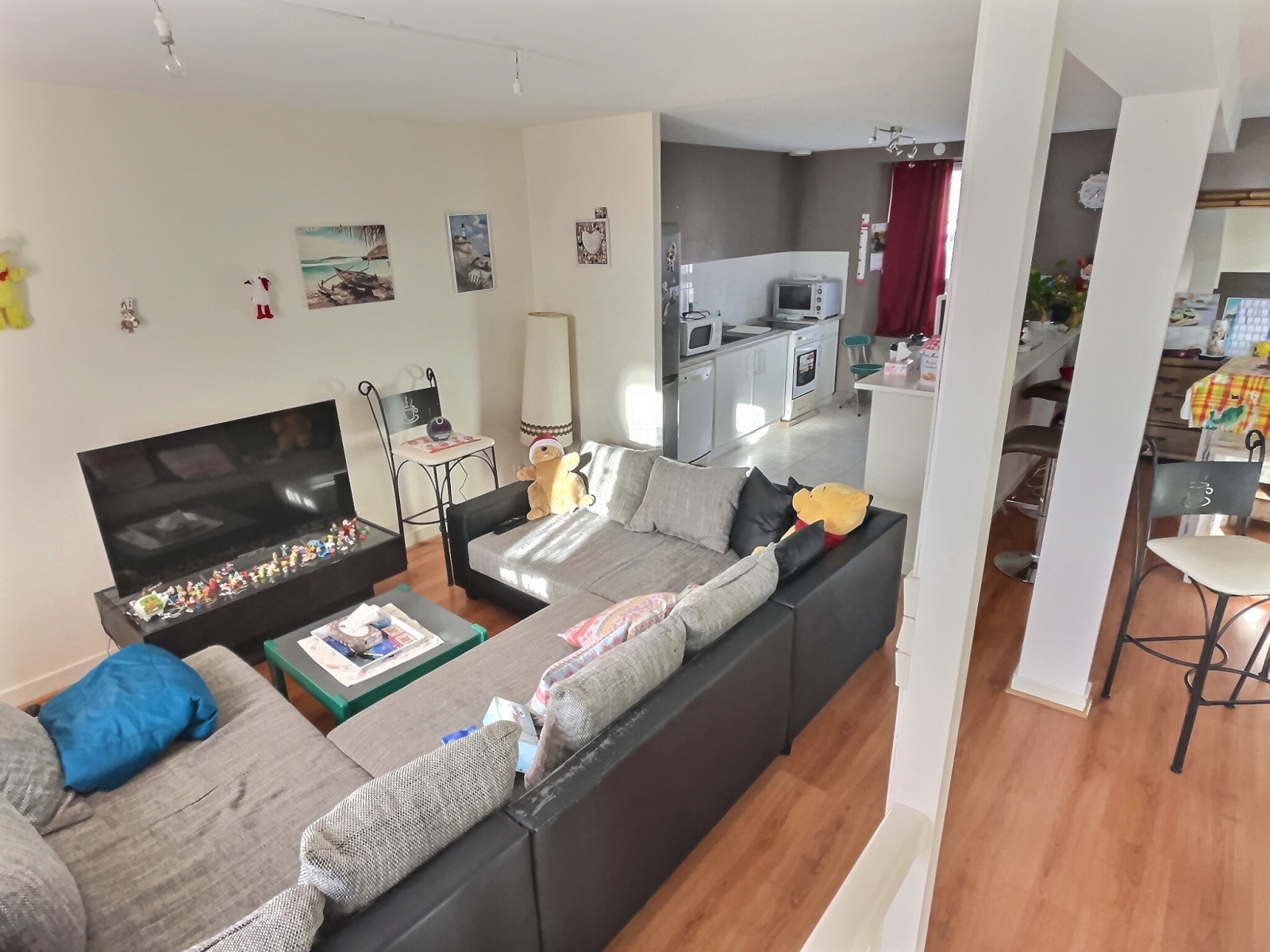 A l’étage, l’appartement style duplex est très aéré. Il est composé d’un grand séjour avec coin cuisine, coin repas et coin salon. Actuellement loué, l'appartement SERA LIBRE FIN JUIN 2024 donc dispo lors de la vente.