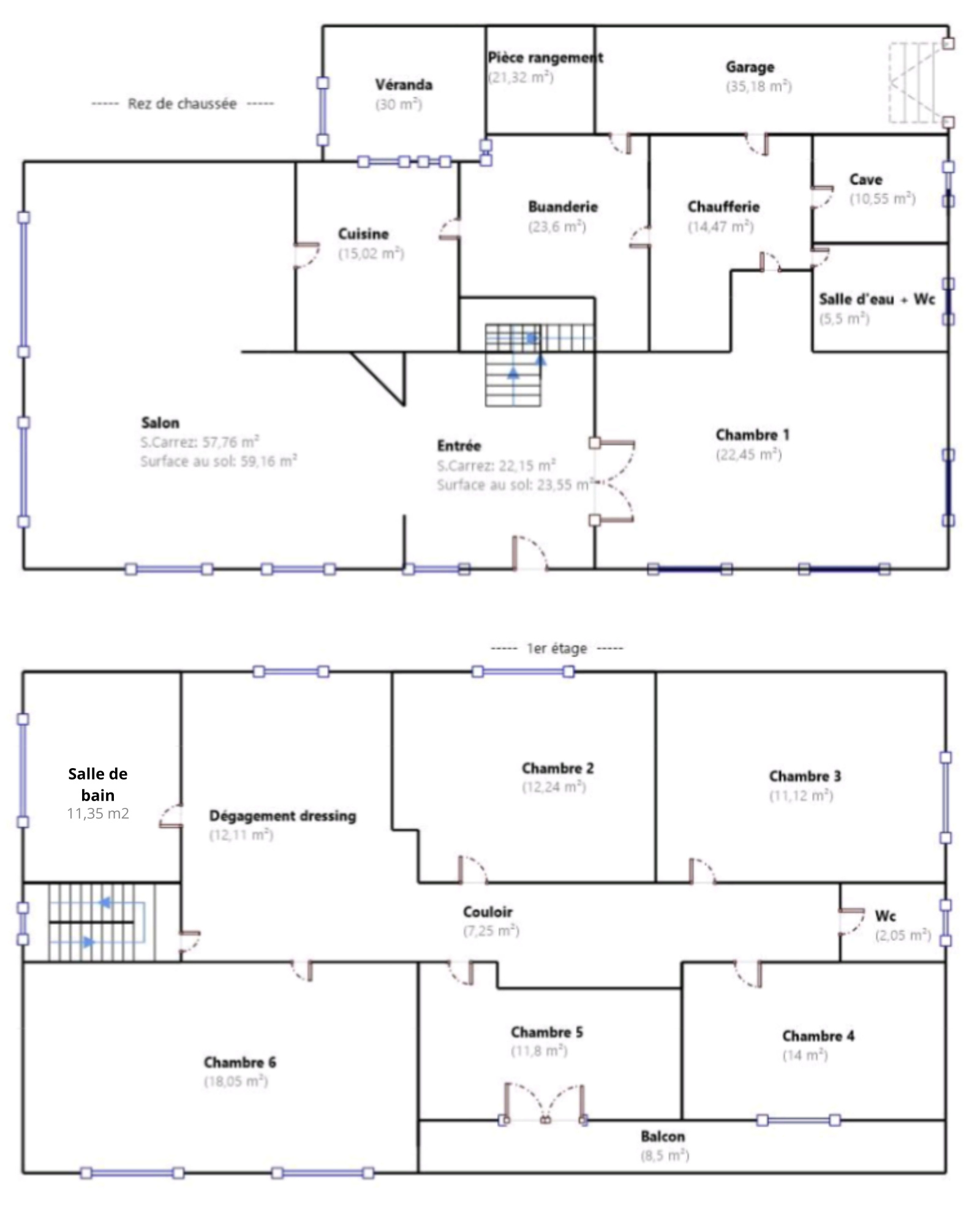 5 autres chambres confortables aux surfaces généreuses : 12,24 m² – 11,12 m² – 14 m² – 11,80 m² – 18 m²