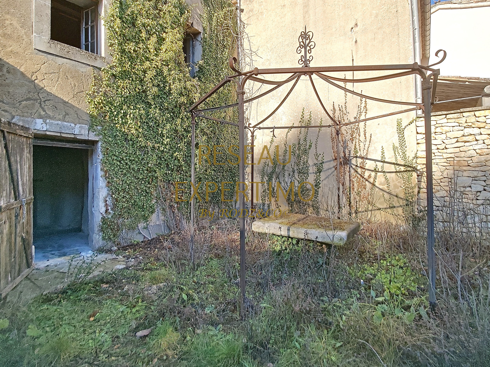Partie mitoyenne d'un ensemble immobilier de type Mas ancien à rénover, avec une annexe et un hangar.