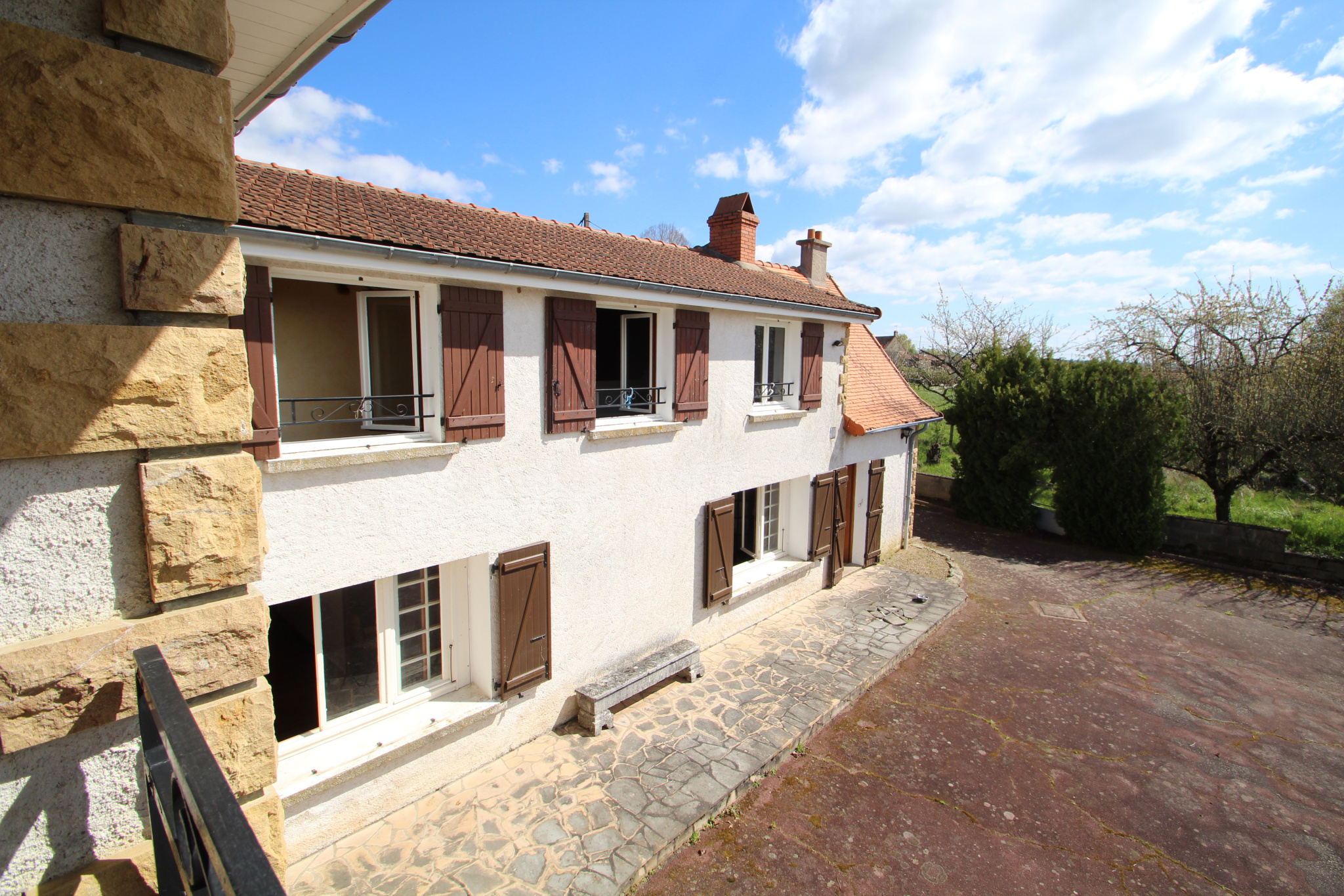 A l'étage, une cuisine, un séjour avec cheminée à insert, deux chambres dont une avec balcon, une salle d'eau, un WC, une salle de bains.