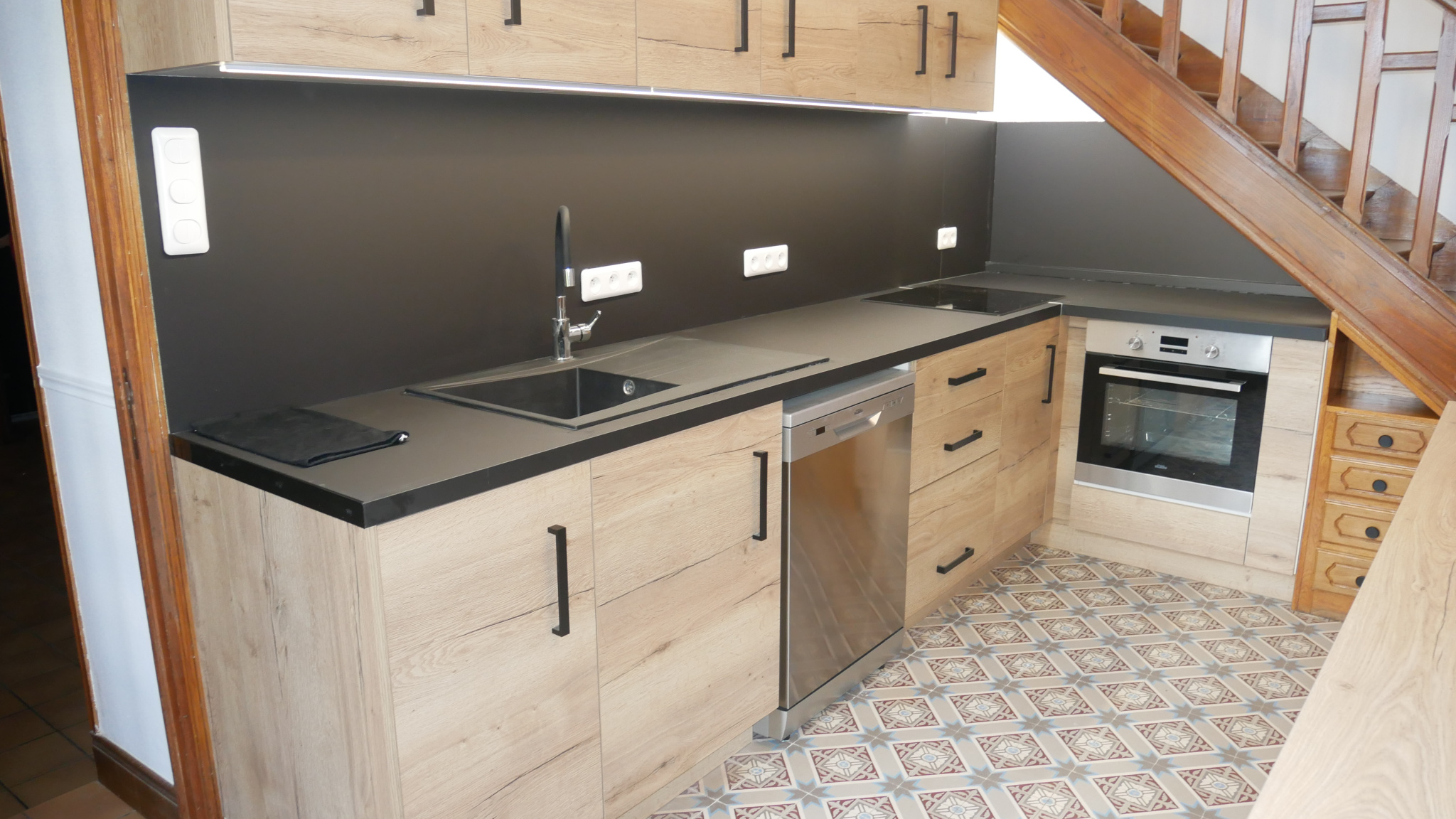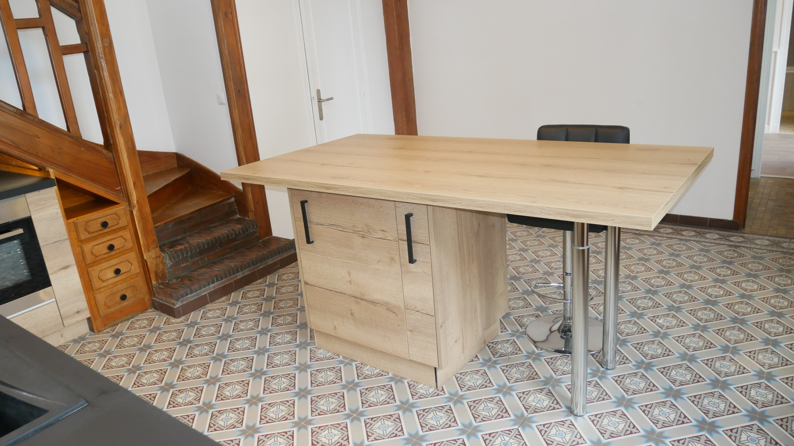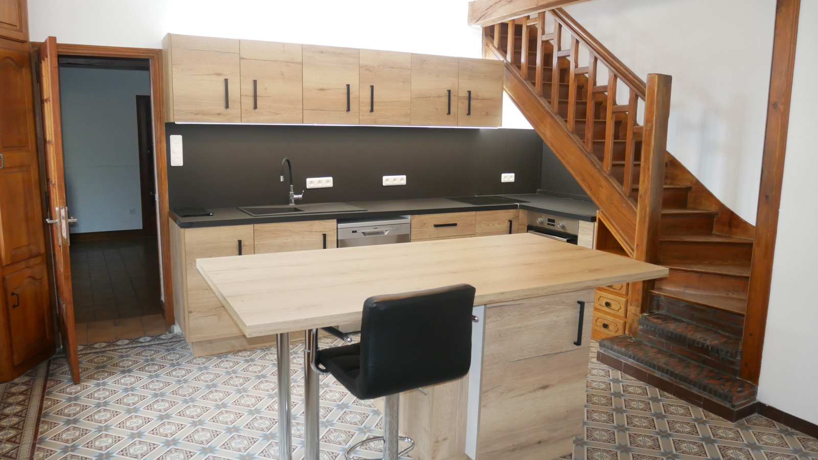 Passons dans la magnifique cuisine dinatoire de 21 m2 avec ilot central, luxueusement équipée. Carreaux de ciment d'origine rajoute charme et authenticité à cette très belle cuisine