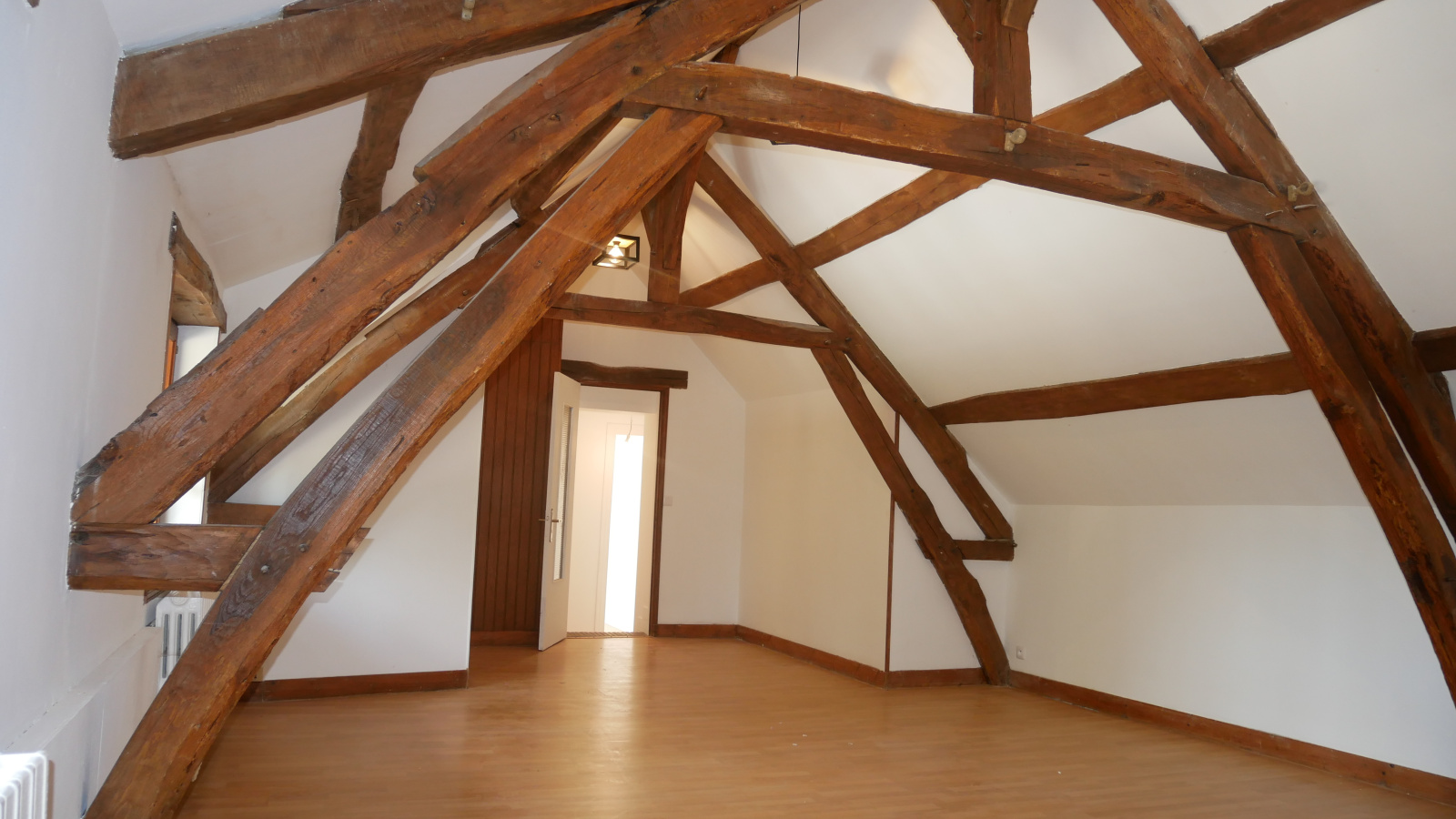 Nous arrivons sur cette pièce magistrale aux poutres apparentes de 38 m2 avec sa salle de bain privative douche et WC