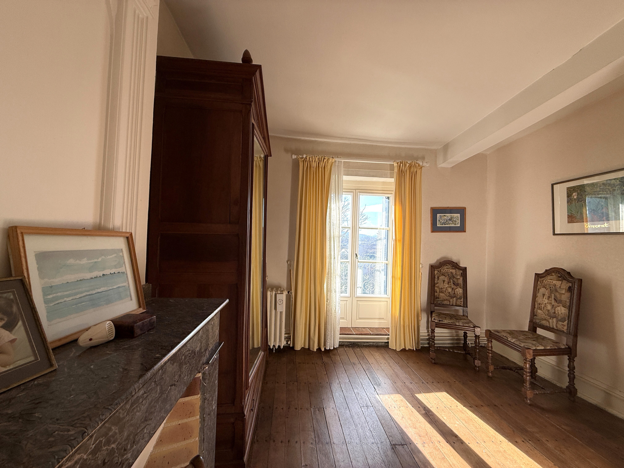 Chauffage par chaudière granulés avec radiateurs dans toutes les pièces, survitrage partout.
