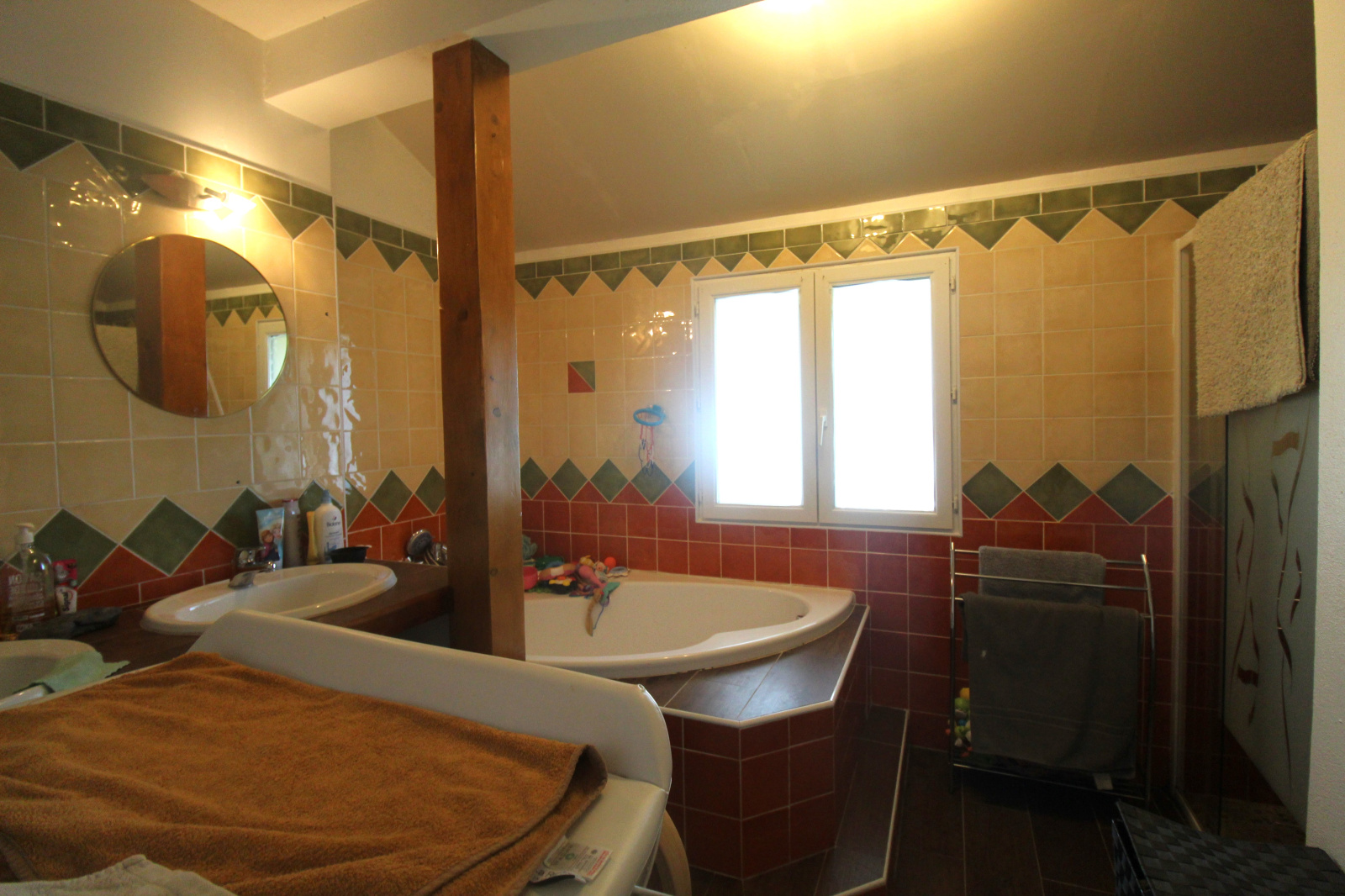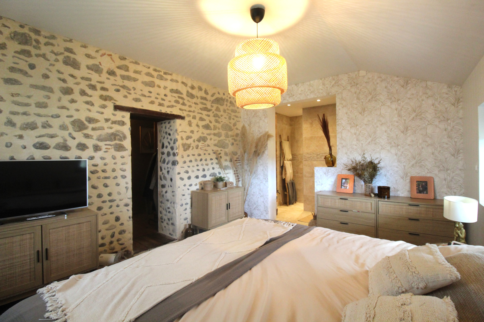 Elle est composée en rez-de-chaussée d'une entrée, d'un grand séjour ouvert sur une cuisine, de quatre chambres dont deux avec salle d'eau, d'une salle de bain indépendante, de deux WC et d'une arrière cuisine.