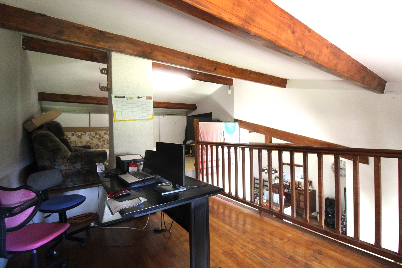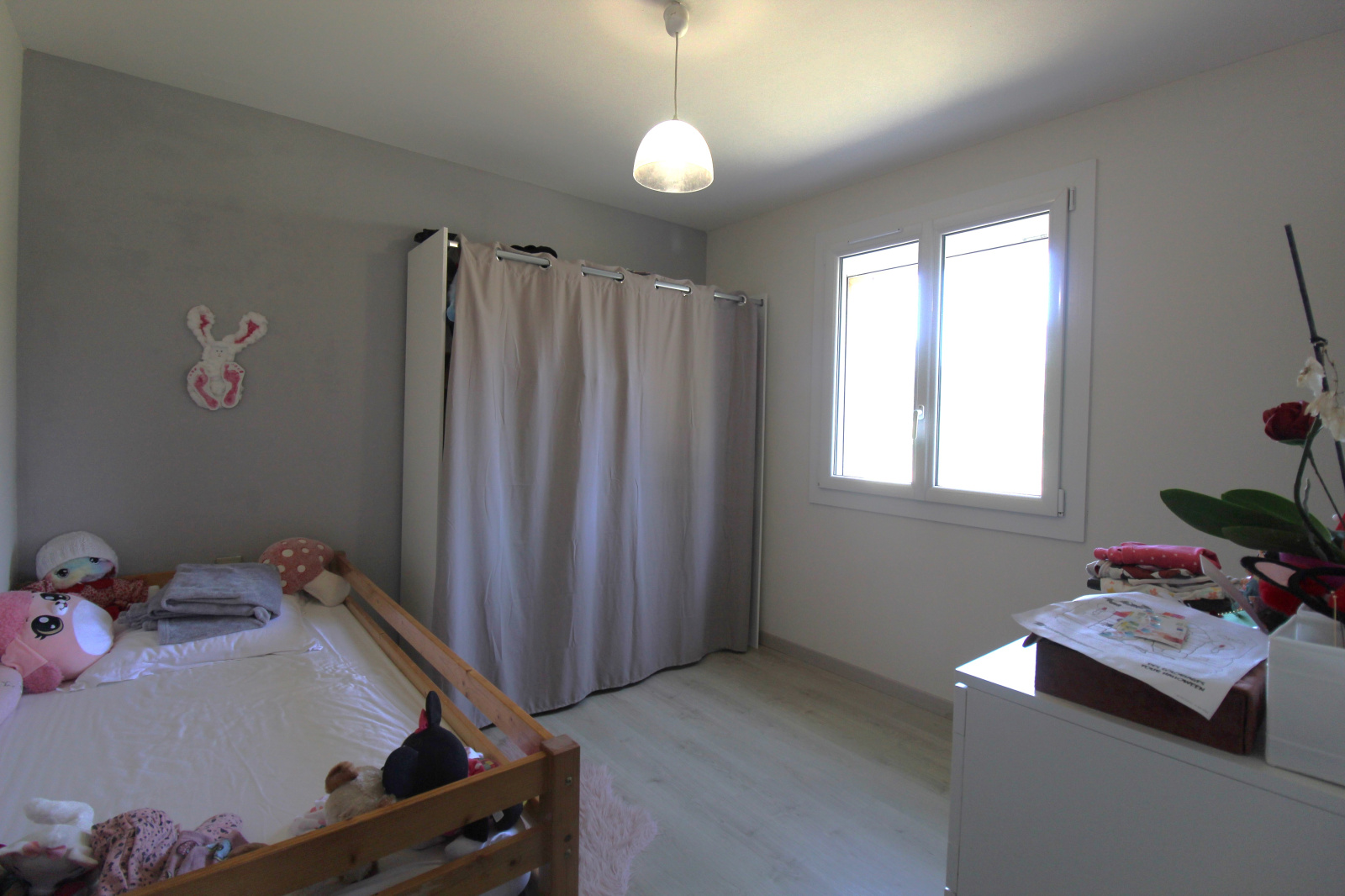 Elle est composée d'une entrée, d'un salon séjour ouvert sur une cuisine, de trois chambres, d'une salle de bain, d'une douche, d'un WC et d'une mezzanine.