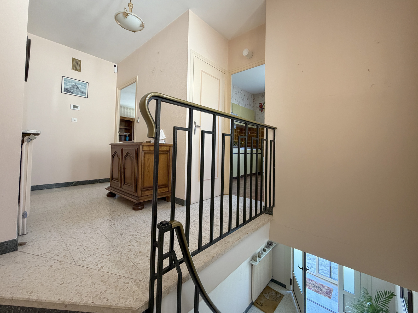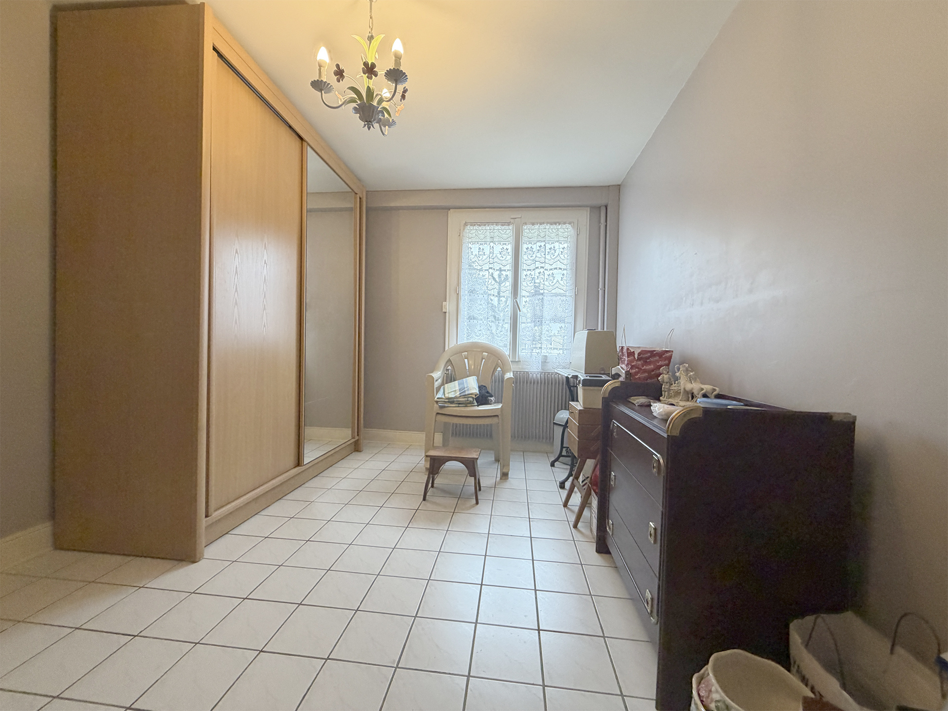 L'étage (Espace de vie principal) : La distribution à l'étage a été pensée pour la convivialité. La pièce de vie, agrémentée d'une cheminée, est baignée de lumière et s'ouvre directement sur un balcon offrant une vue dégagée sur le quartier. Ce niveau dispose également de deux chambres supplémentaires, d'une salle de bain, d'un WC indépendant et de nombreux rangements intégrés facilitant l'organisation quotidienne.
