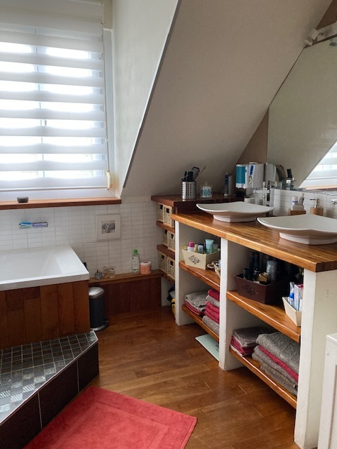 - A l'étage : palier, 3 belles chambres avec placards, dont 1 avec dressing, une chambre-bureau, une salle de bain - douche à l'italienne et un wc indépendant