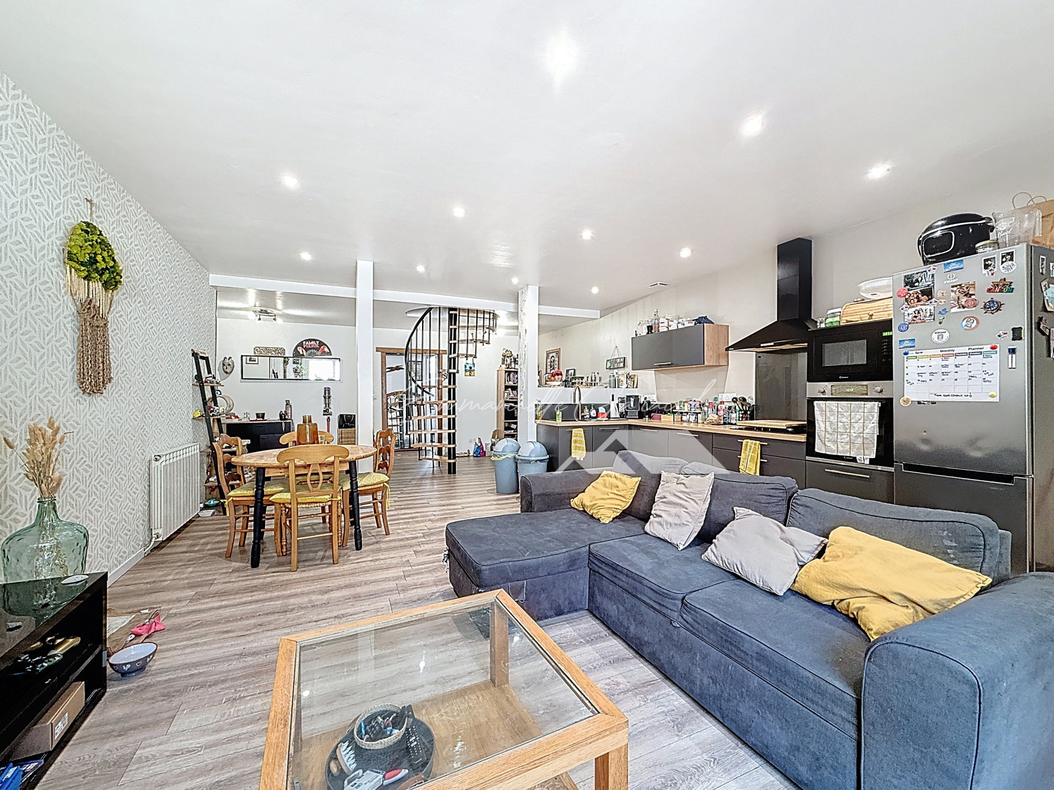 Dès l’entrée, le charme opère. La belle pièce de vie d’environ 49 m², baignée de lumière, invite à la convivialité et aux moments partagés. Les volumes généreux et l’atmosphère chaleureuse permettent de se projeter sans effort.
