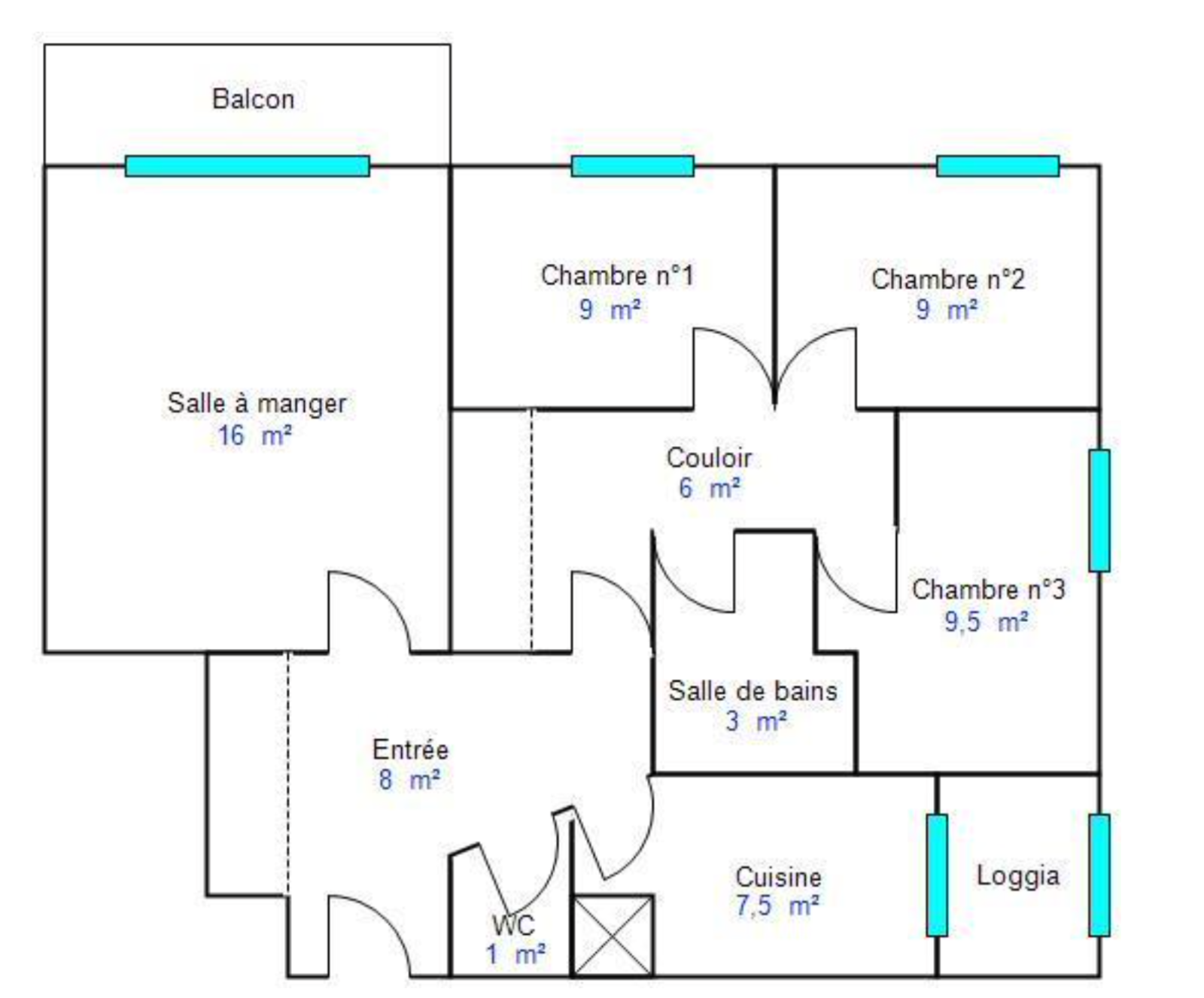L'appartement est composé d'un séjour ouvrant sur un balcon de 3 m² offrant une superbe vue dégagée, cuisine séparée avec loggia de 2,20 m², un dégagement dessert ensuite trois chambres de 9 m² à 9,50 m², salle de bain et WC séparé.