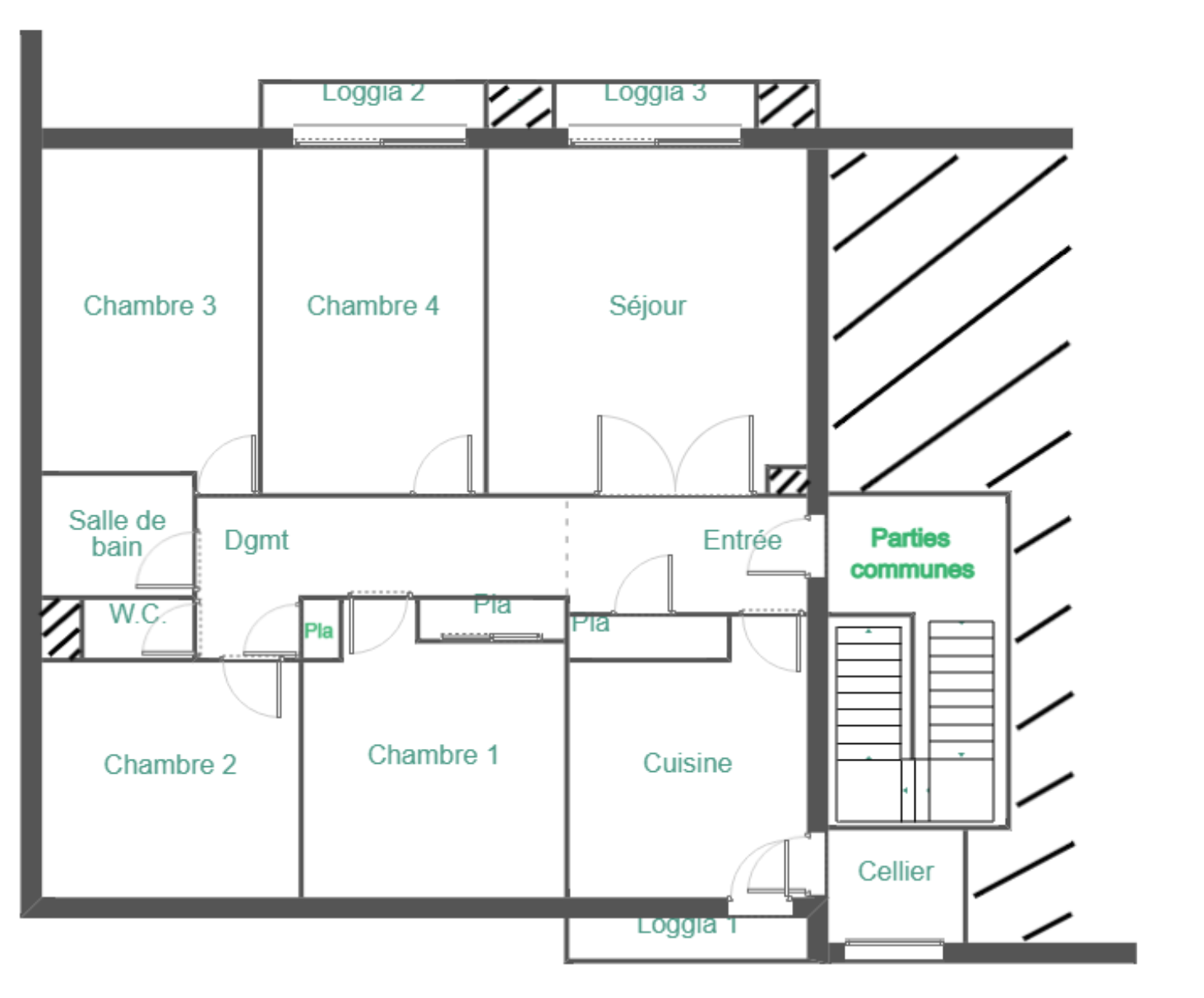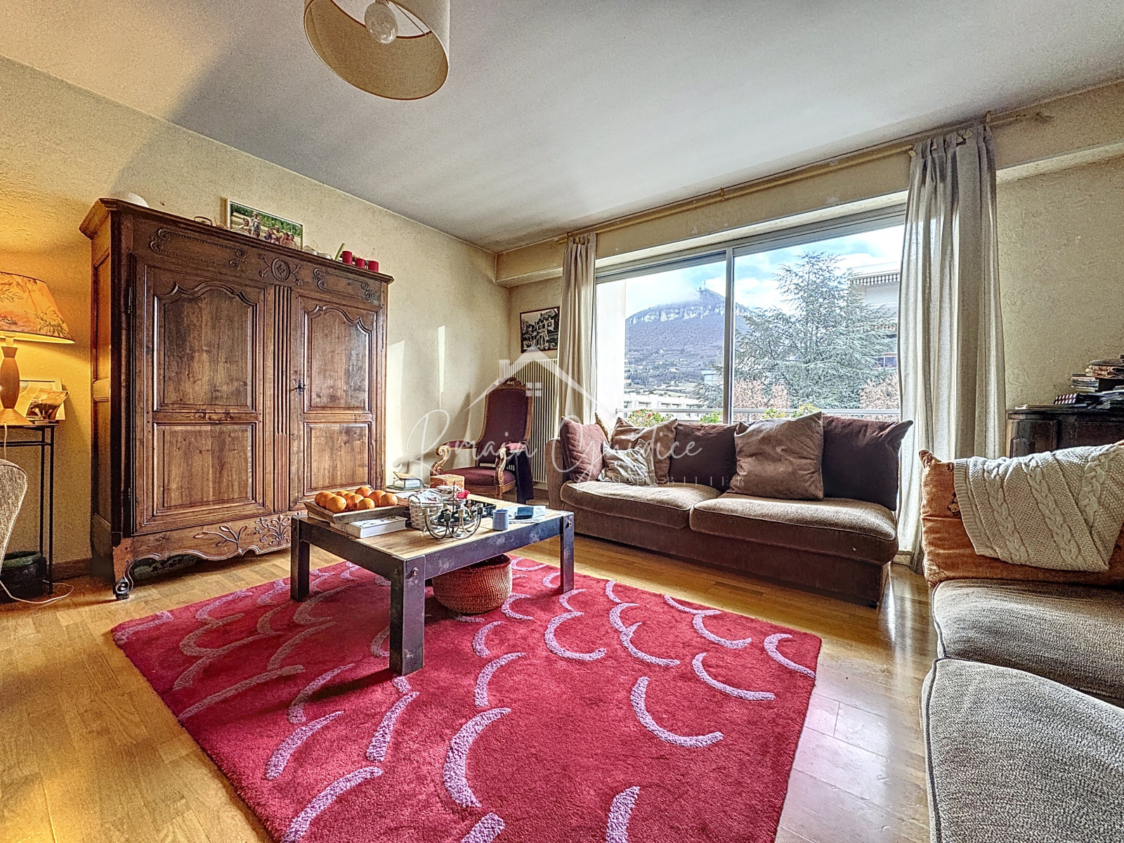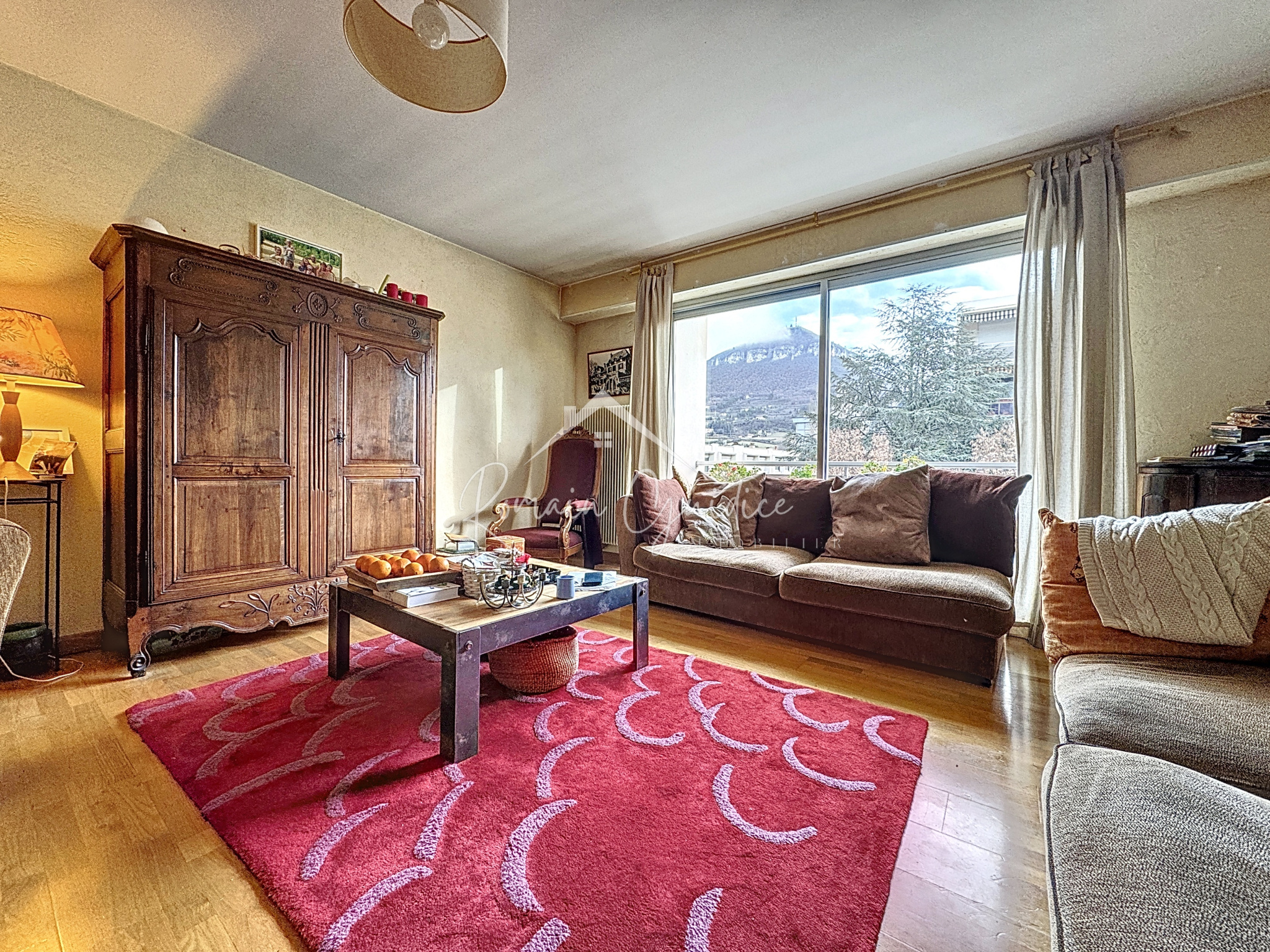 L'appartement est composé d'un séjour avec superbe vue sur la Puncho d'Agast, cuisine séparée et équipée donnant sur une loggia et un cellier bien utiles, un couloir dessert ensuite quatre chambres de belle taille de 12,12 m² à 15,46 m², WC séparé et salle de bains.