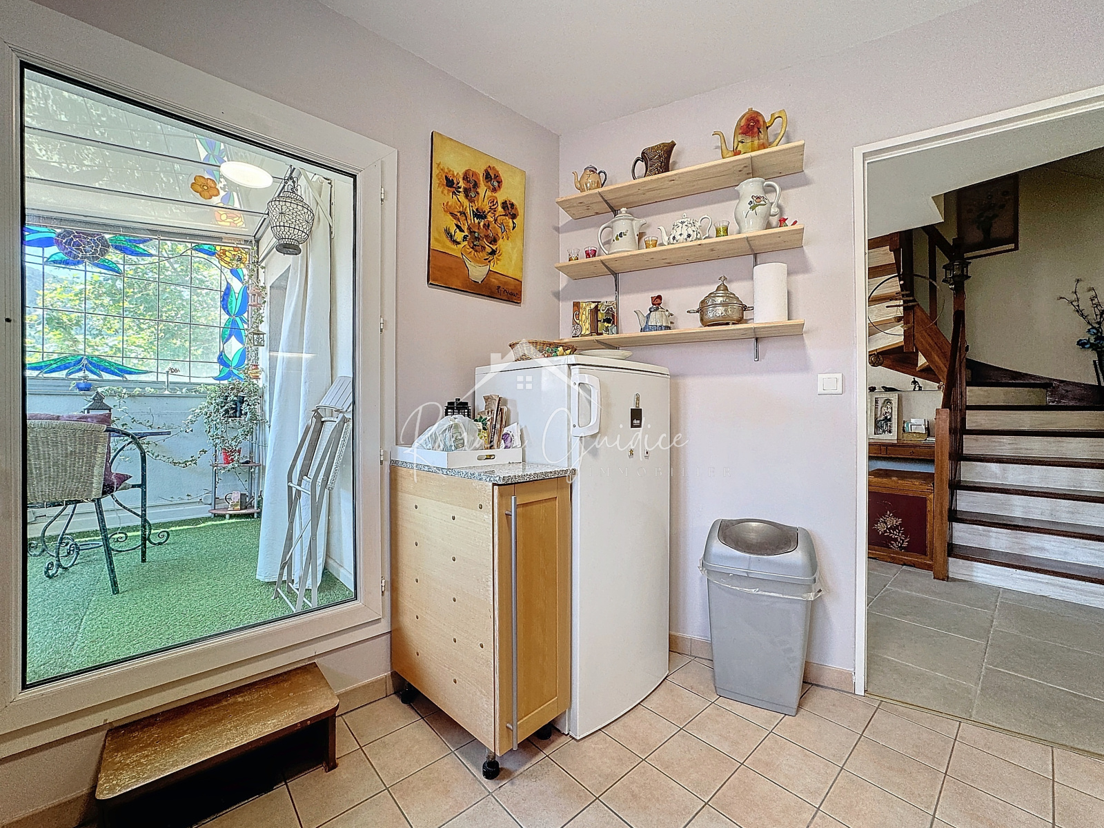 Cette véranda permet d'accéder également à la cuisine séparée de 8,84 m².