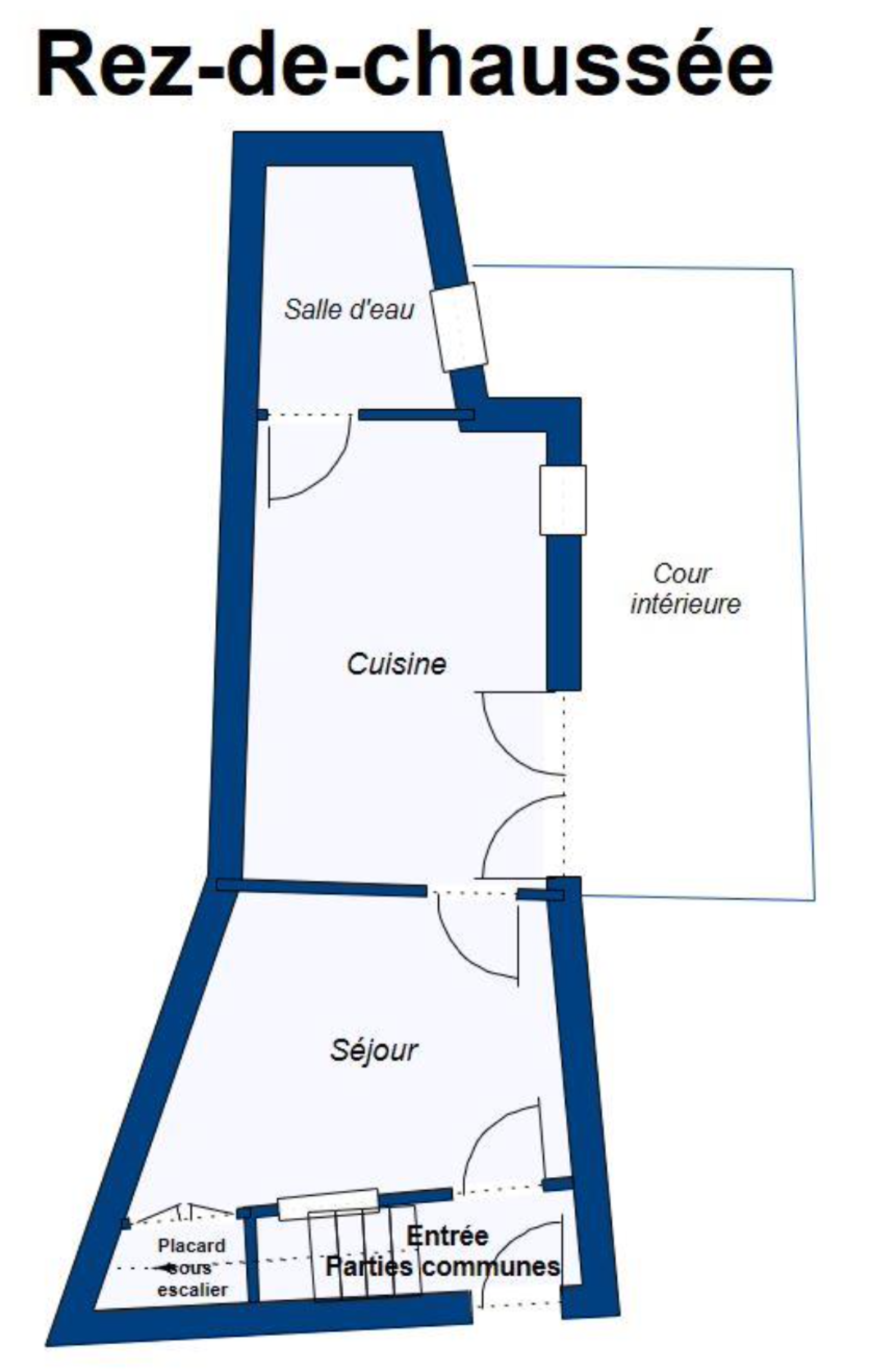 - En rez-de-chaussée: un appartement F1 de 25 m² avec cour intérieure privative classé E loué nu 260€ / mois.
