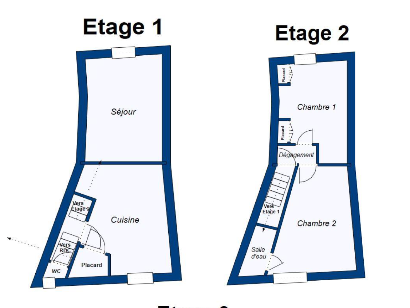 - À l'étage un duplex F3 de 50 m² classé C libre de tout occupant précédemment loué 450€ / mois