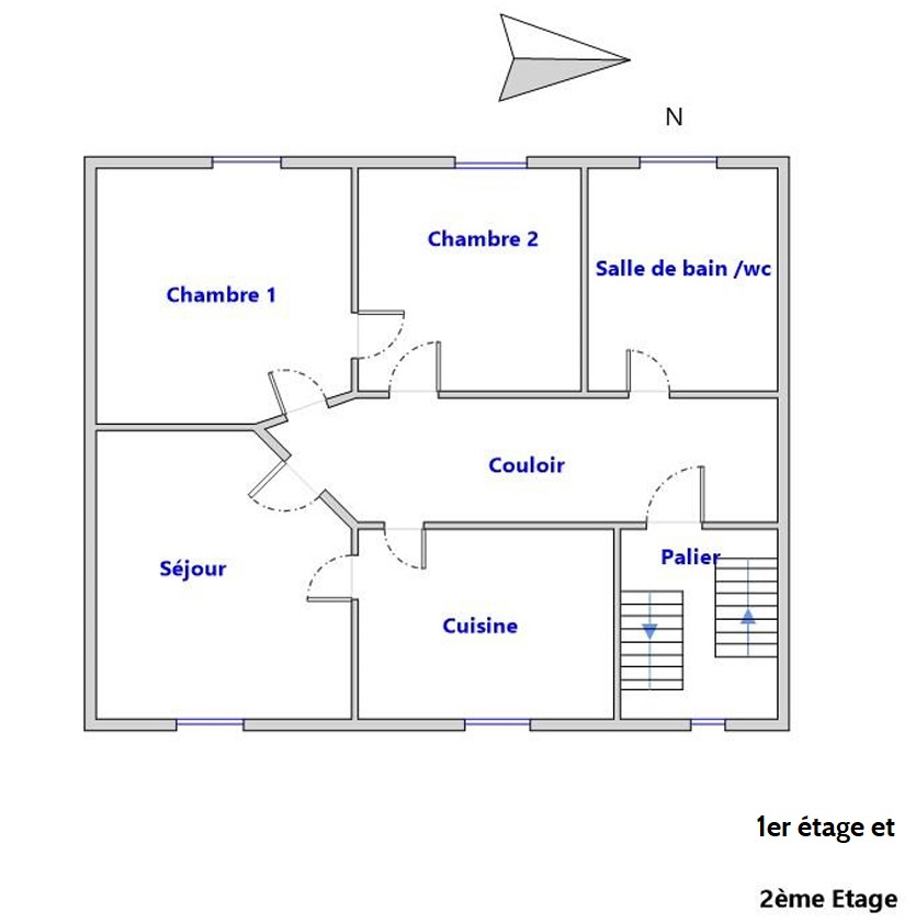 - Le deuxième étage nécessite un rafraîchissement et dispose de menuiseries en simple vitrage (chaudière commune avec le 1er)