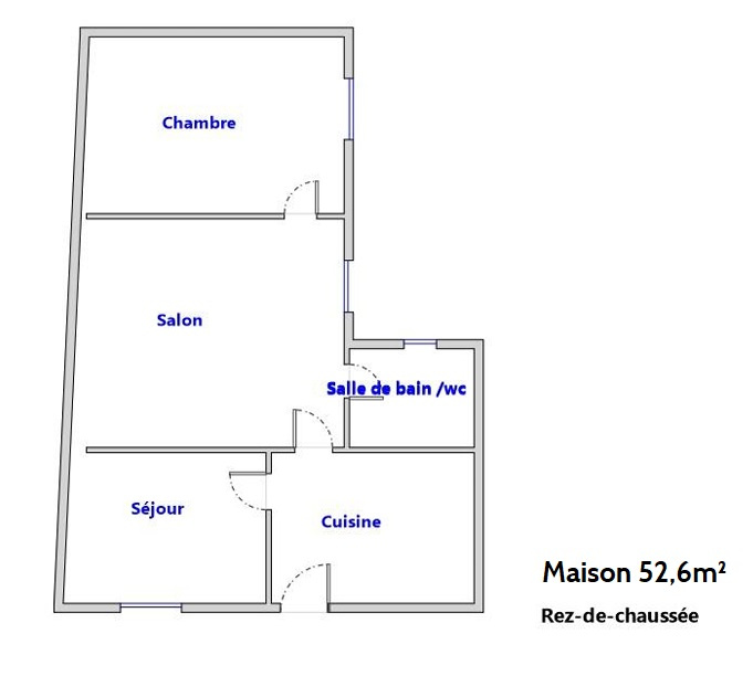L’ensemble se compose de trois appartements de type T3, quasiment identiques, d’environ 82 m² chacun, ainsi que d’une maisonnette T3 indépendante d’environ 52 m² habitables. Des caves en rez-de-chaussée complètent le bien, ainsi qu’un jardin situé à l’arrière (enclavé), le tout sur une parcelle d'environ 640 m².