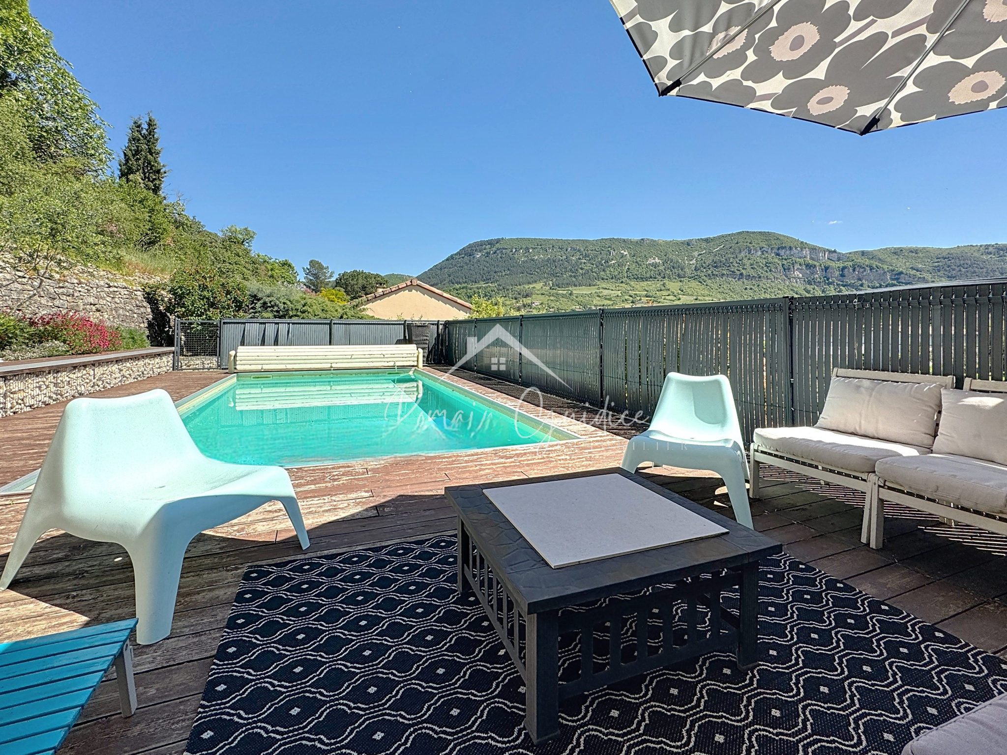 Les extérieurs et son terrain de 1514 m², parfaitement entretenu, invite à la détente : grande terrasse sans vis-à -vis, magnifique piscine chauffée avec abri de 10,80 m², coin potager, et vues imprenables sur les causses environnante.