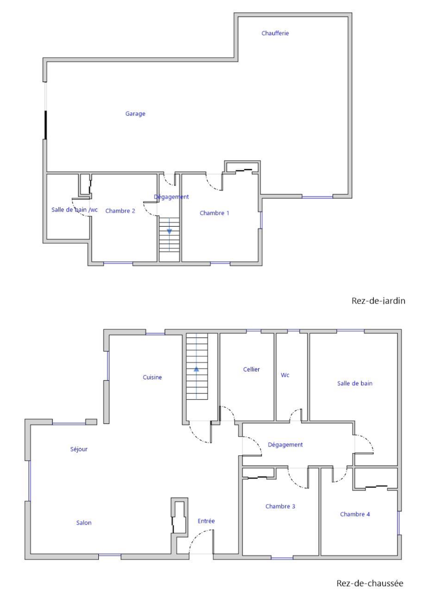 À l'étage inférieur, vous profiterez de deux chambres supplémentaires de 10,95 m² et 15,65 m², une salle d'eau et le garage de près de 74 m².