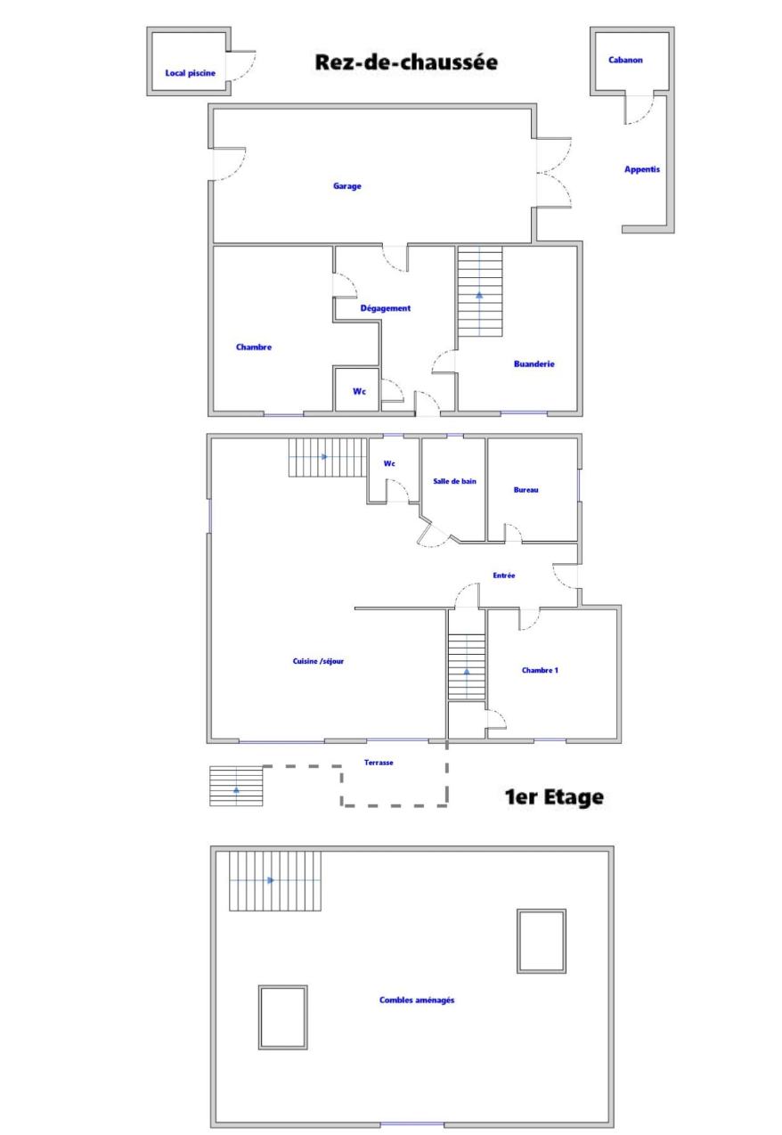À l’étage supérieur, une grande pièce mansardée de 25 m² habitables (53 m² au sol) baignée de lumière offre de multiples possibilités : vaste espace détente, chambre parentale, ou deux chambres supplémentaires à créer selon vos besoins.