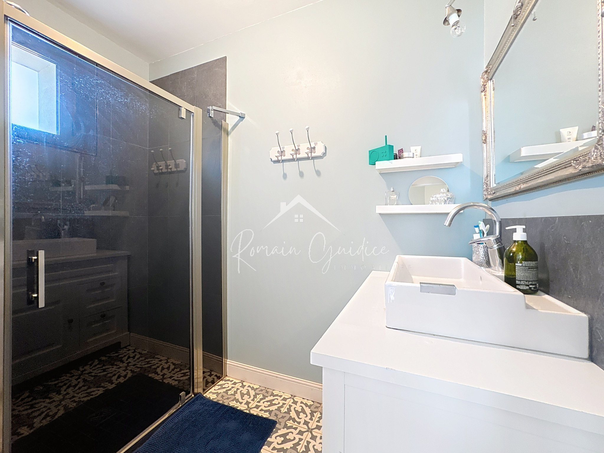 La rénovation met en valeur de beaux matériaux : parquet bois, carreaux de ciment, terres cuites… L’ensemble dégage une atmosphère authentique et chaleureuse.