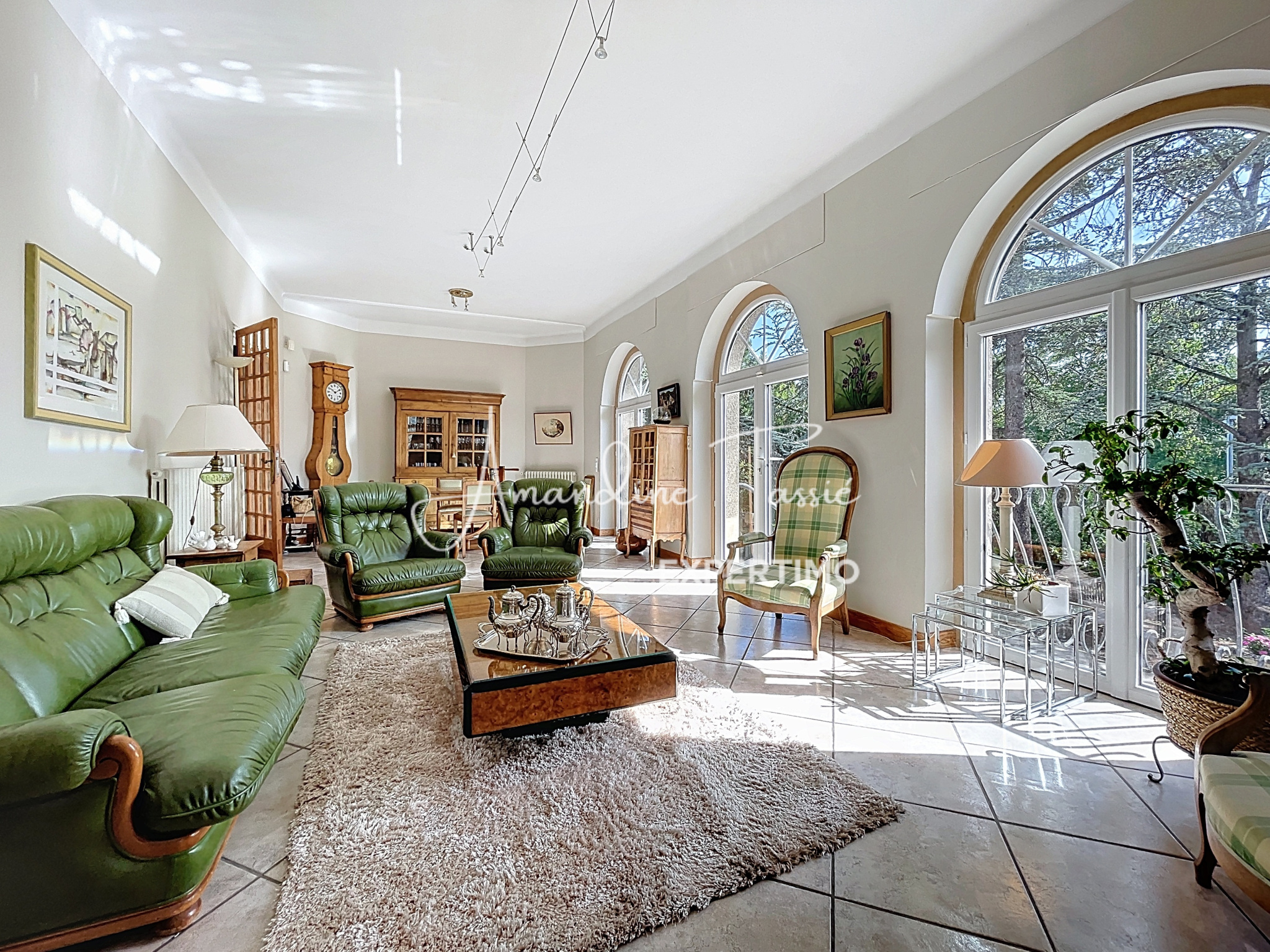 L'entrée se fait par un superbe hall vitré et baigné de lumière, qui donne le ton et l'accès à un séjour d'environ 45 m² avec cheminée et de grandes ouvertures cintrées qui apportent luminosité et cachet. La cuisine séparée communique avec une salle à manger et la terrasse extérieure. Une chambre avec salle d’eau complètent ce niveau, ainsi qu’un toilette séparé.