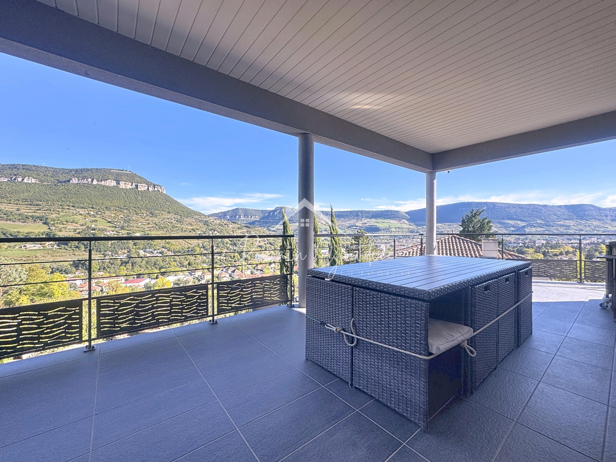 •Une terrasse non couverte de 31,08 m², exposée au sud, avec un panorama exceptionnel sur les causses, la ville de Millau et son viaduc.